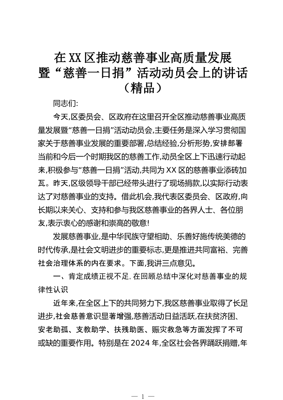 在XX區(qū)推動(dòng)慈善事業(yè)高質(zhì)量發(fā)展暨“慈善一日捐”活動(dòng)動(dòng)員會(huì)上的講話(精品)