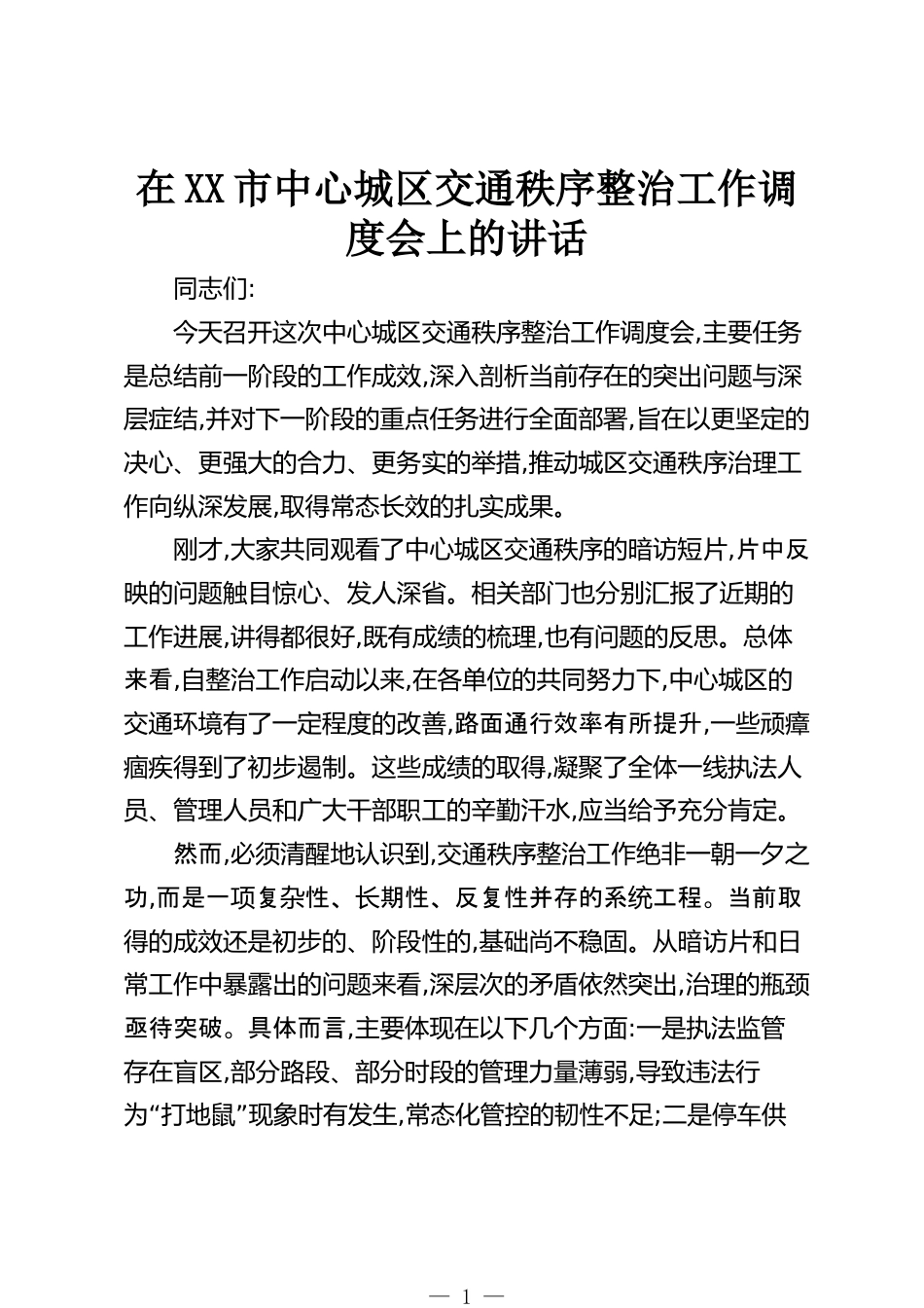 在XX市中心城區(qū)交通秩序整治工作調(diào)度會上的講話