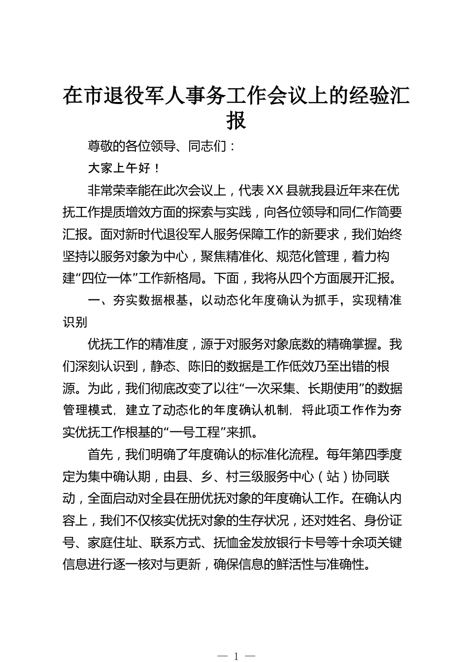 在市退役軍人事務工作會議上的經(jīng)驗匯報