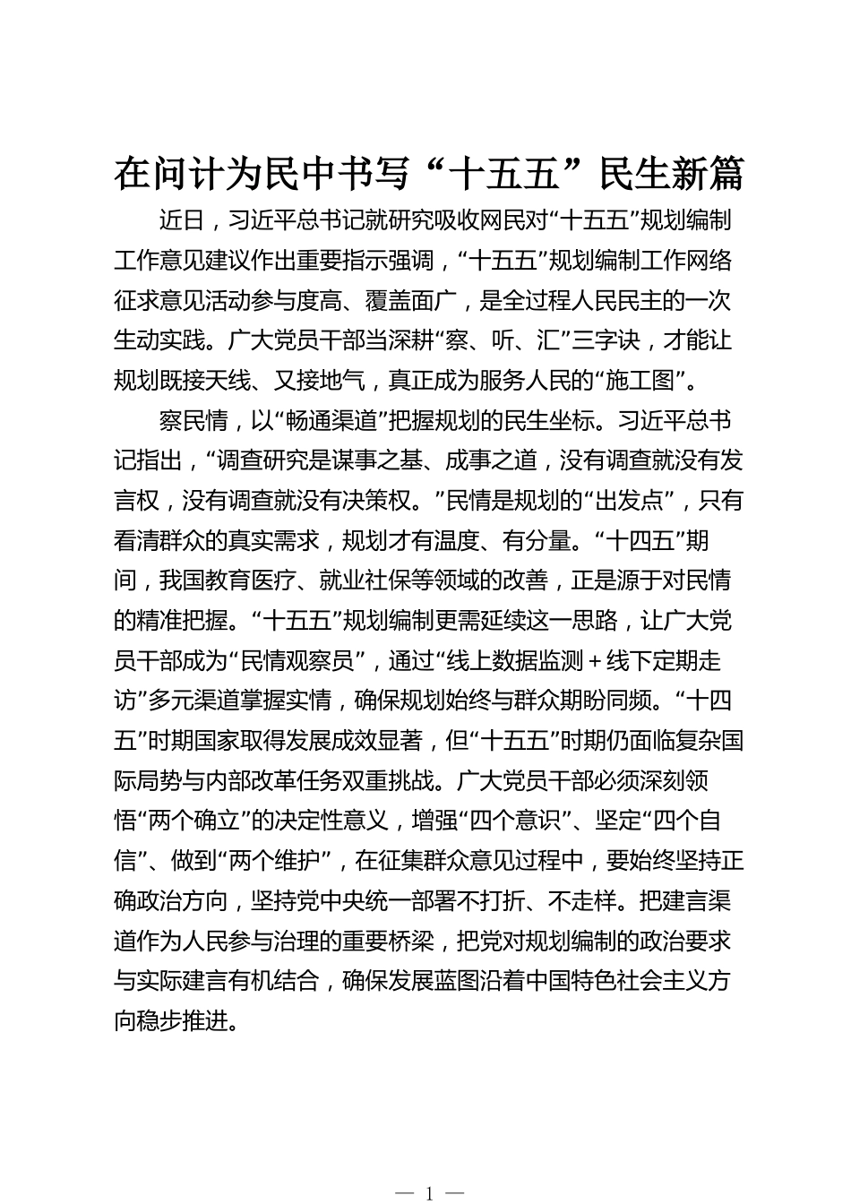 在問計(jì)為民中書寫“十五五”民生新篇“”近日,習(xí)近平總書記就研究吸收網(wǎng)民對十五五規(guī)劃編制“”工作意見建議作出重要指示強(qiáng)調(diào),十五五規(guī)劃編制工作網(wǎng)絡(luò)征求意見活動(dòng)參與度高、覆蓋面廣,是全過程人民民主的一次“”生動(dòng)實(shí)踐。廣大黨員干部當(dāng)深耕察、聽、匯三字訣,才能讓“”規(guī)劃既接天線、又接地氣,真正成為服務(wù)人民的施工圖?!啊辈烀袂?,以暢通渠道把握規(guī)劃的民生坐標(biāo)。?習(xí)近平總書“記指出,調(diào)查研究是謀事之基、成事之道,沒有調(diào)查就沒有發(fā)”“”言權(quán),沒有調(diào)查就沒有決策權(quán)。民情是規(guī)劃的出發(fā)點(diǎn),只有“”看清群眾的真實(shí)需求,規(guī)劃才有溫度、有分量。十四五期間...