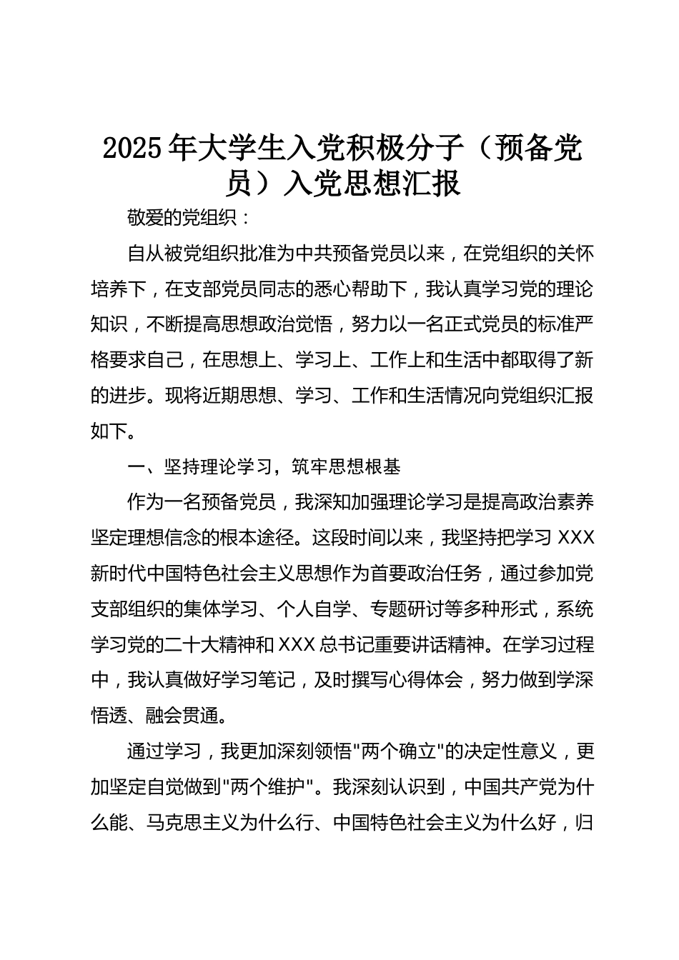 2025年大學(xué)生入黨積極分子(預(yù)備黨員)入黨思想?yún)R報