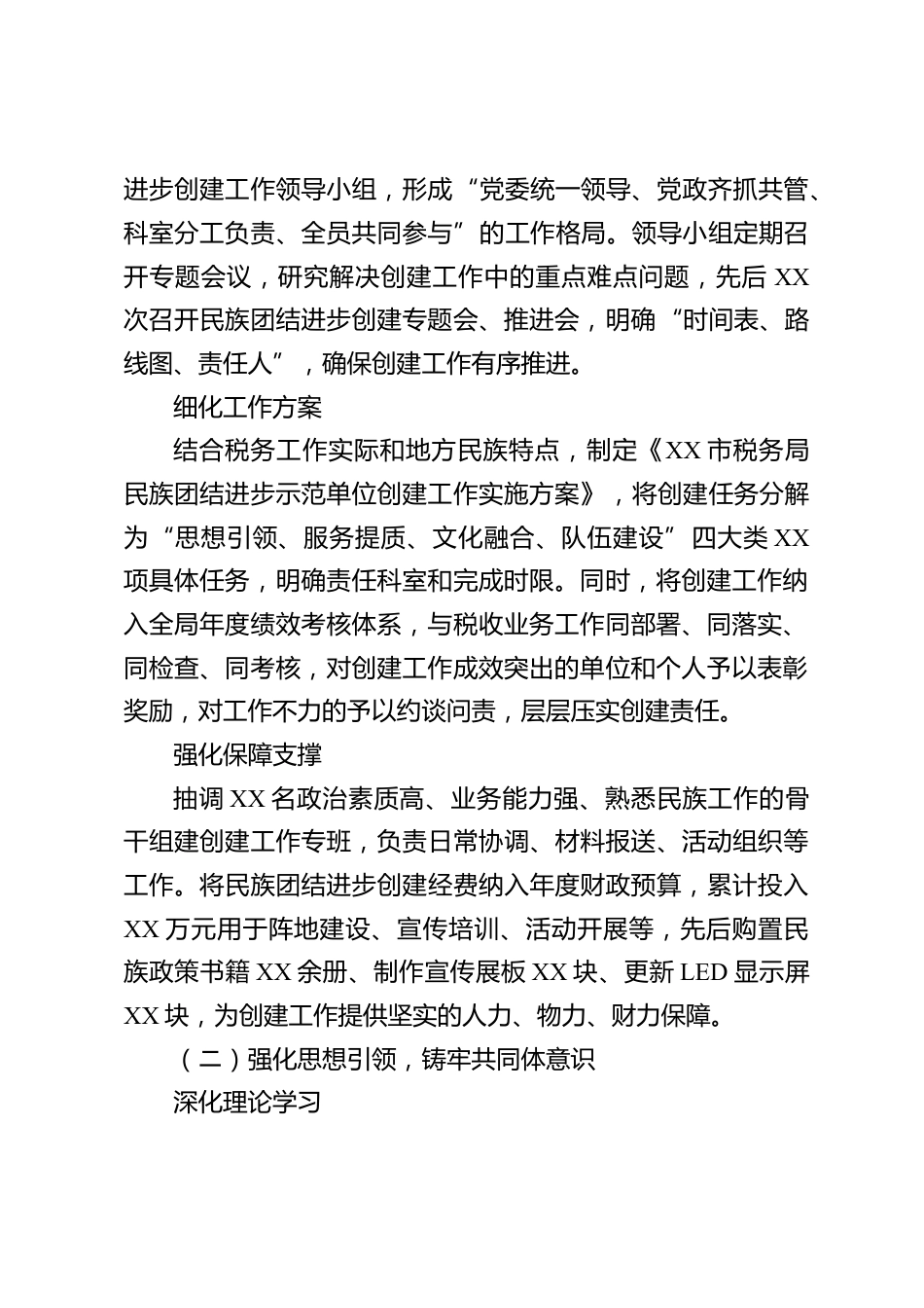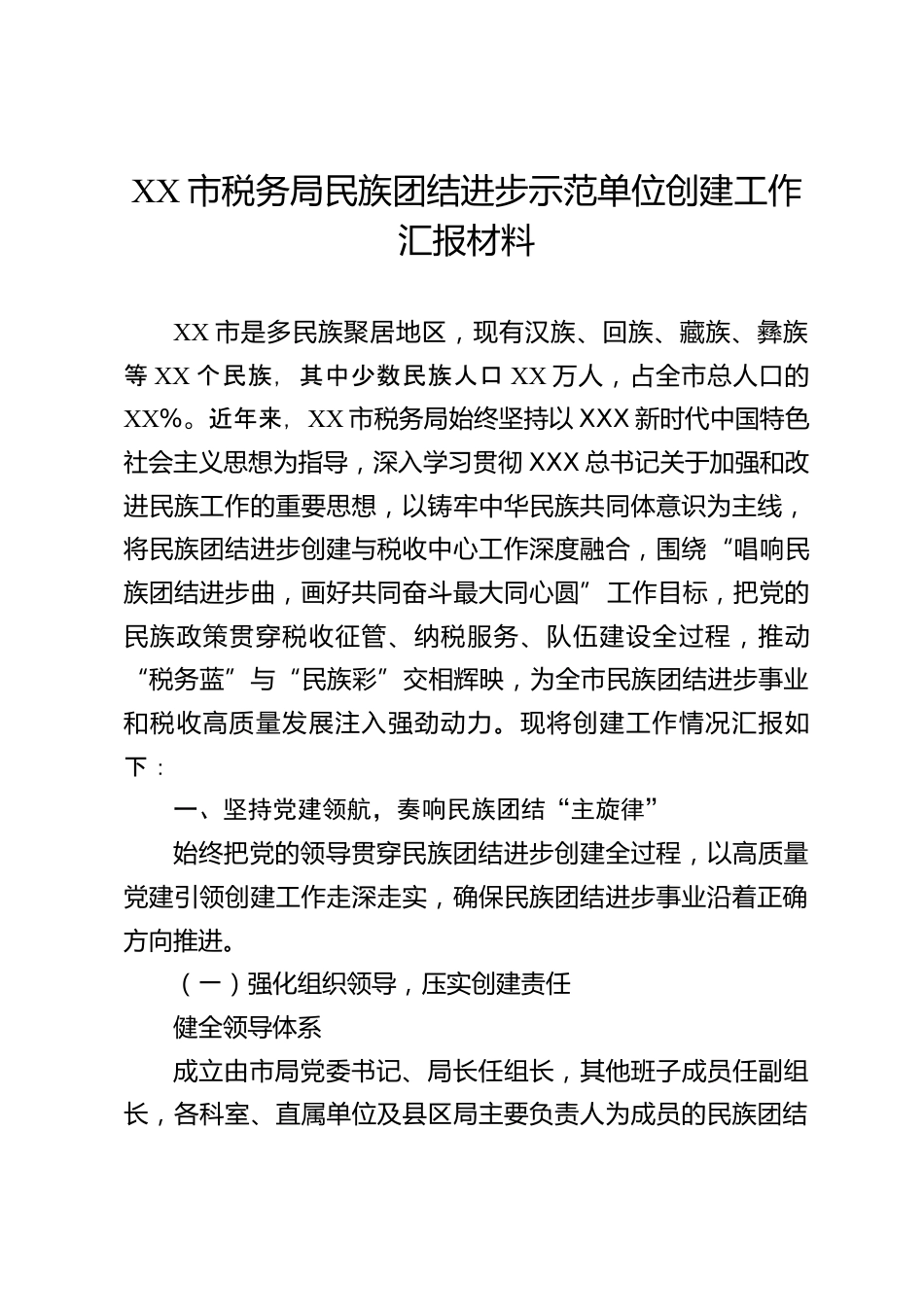 XX 市稅務(wù)局民族團結(jié)進步示范單位創(chuàng)建工作匯報材料