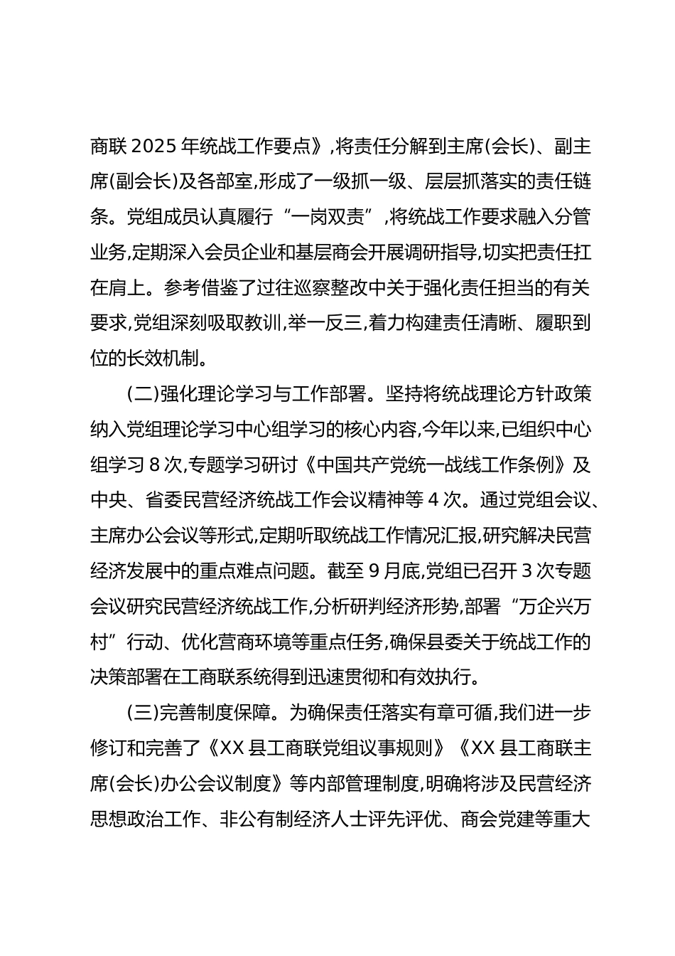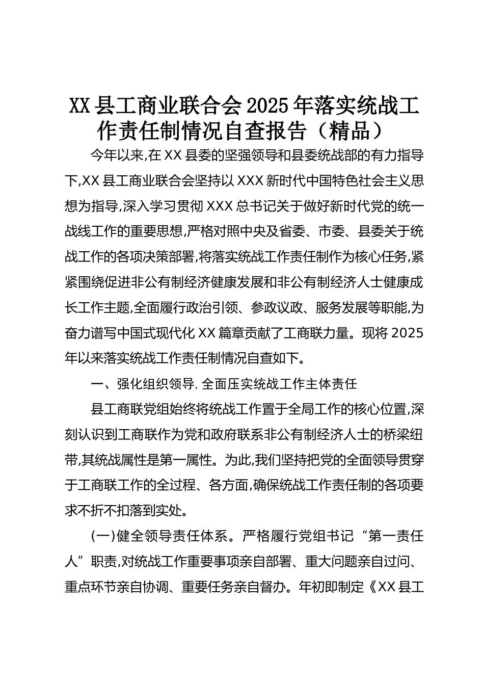 XX縣工商業(yè)聯(lián)合會(huì)2025年落實(shí)統(tǒng)戰(zhàn)工作責(zé)任制情況自查報(bào)告(精品)
