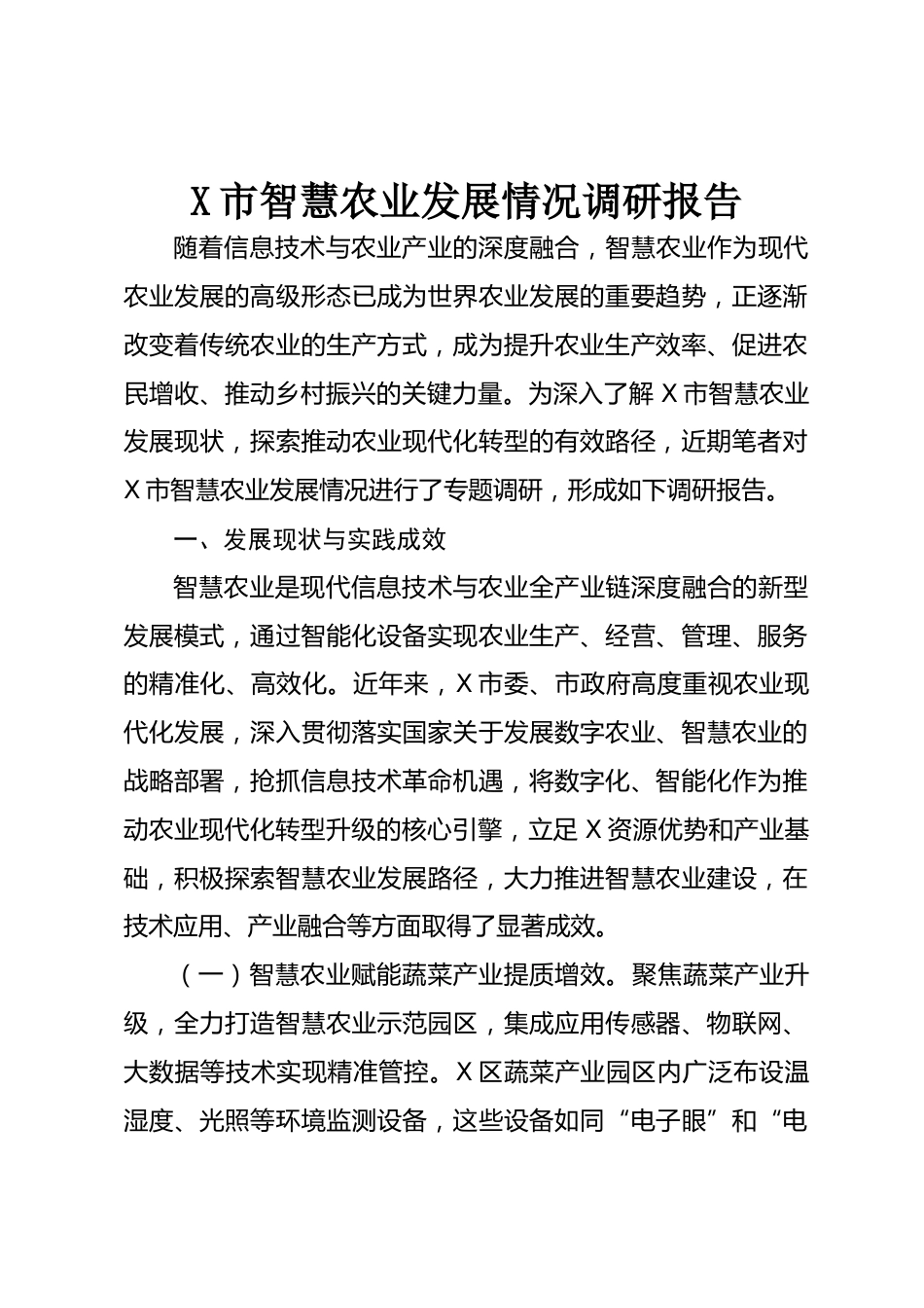 X市智慧農(nóng)業(yè)發(fā)展情況調(diào)研報告