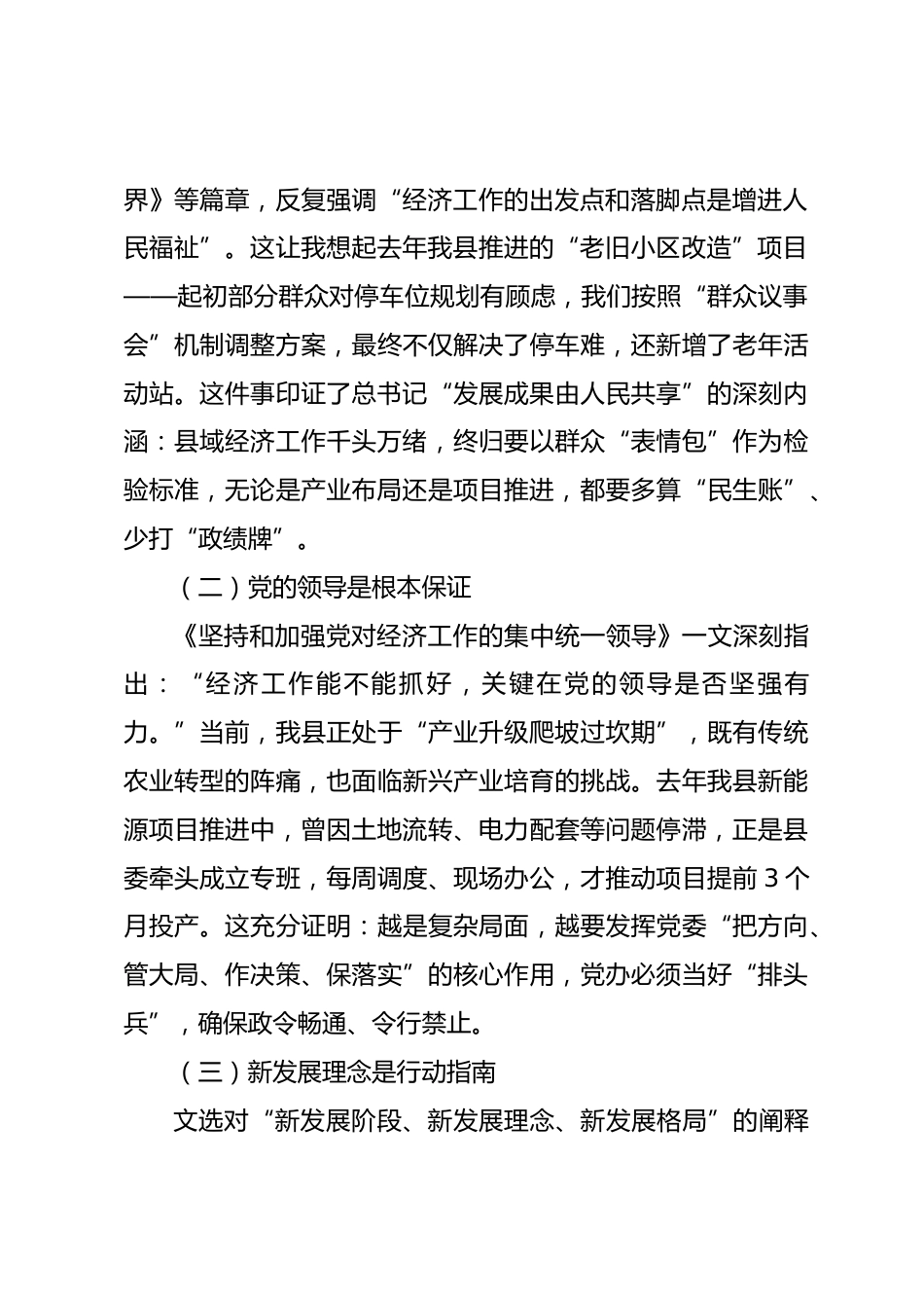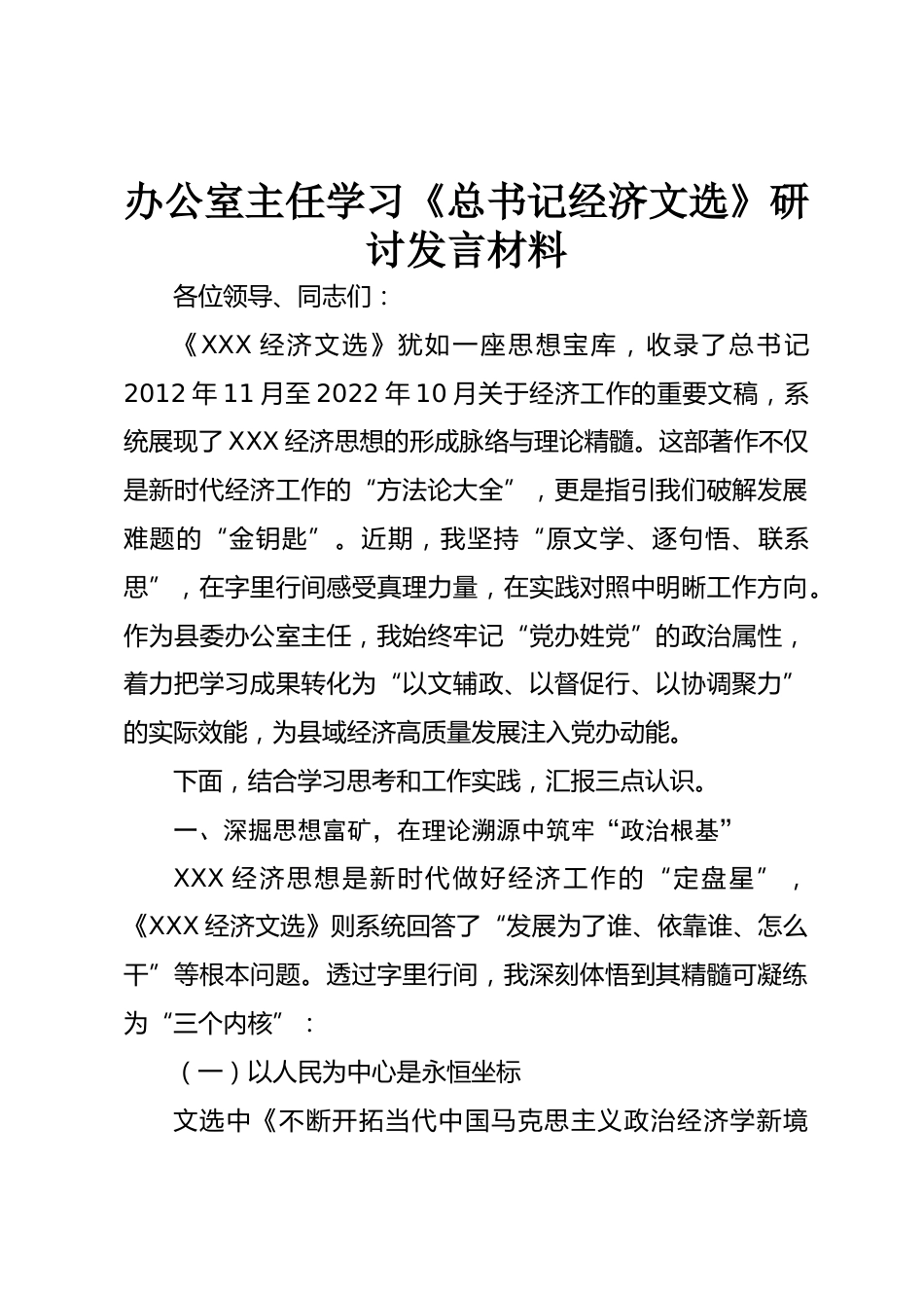 辦公室主任學(xué)習(xí)《總書記經(jīng)濟(jì)文選》研討發(fā)言材料