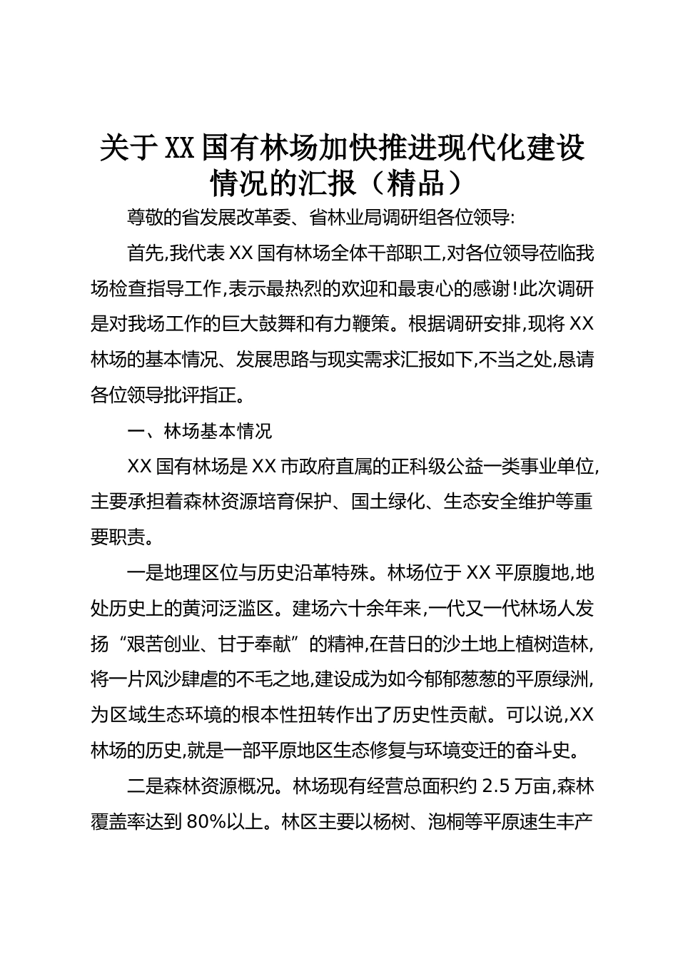關(guān)于XX國有林場加快推進(jìn)現(xiàn)代化建設(shè)情況的匯報(bào)(精品)