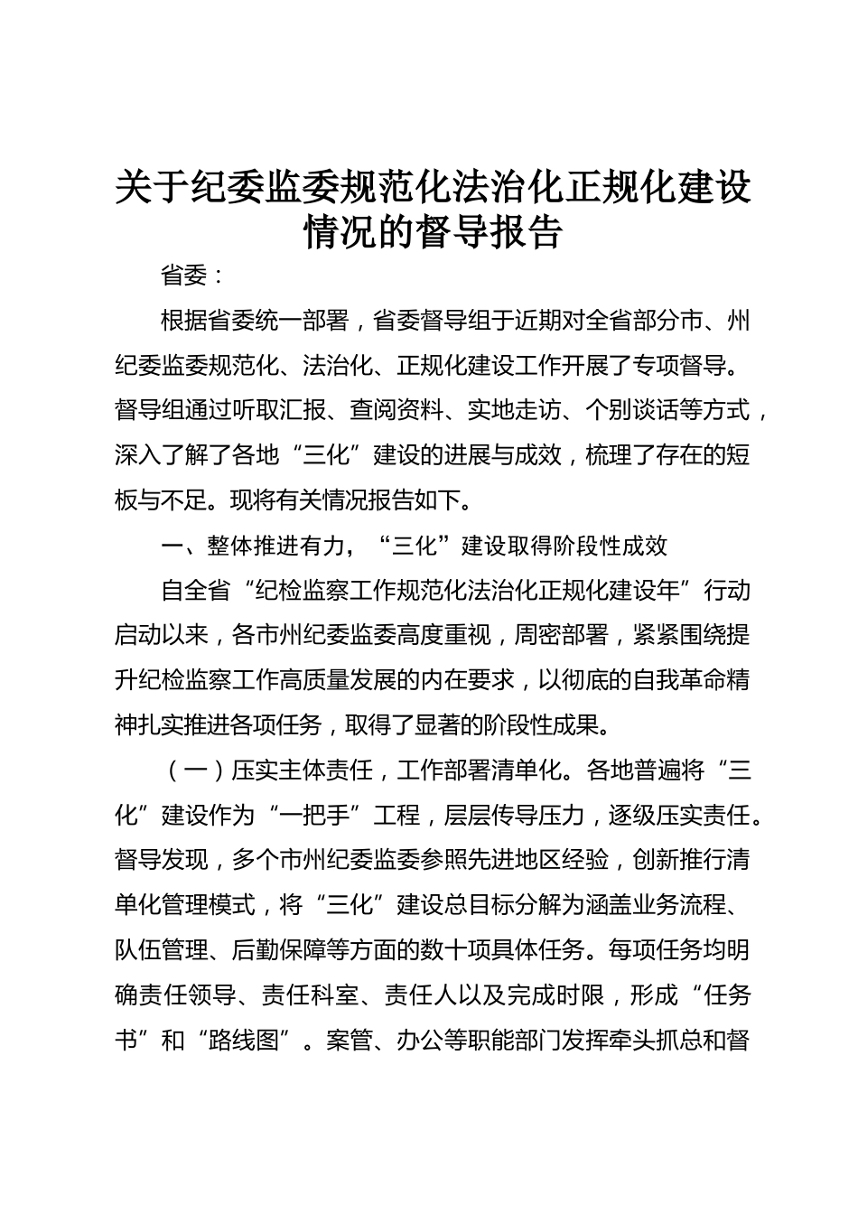 關(guān)于紀(jì)委監(jiān)委規(guī)范化法治化正規(guī)化建設(shè)情況的督導(dǎo)報告