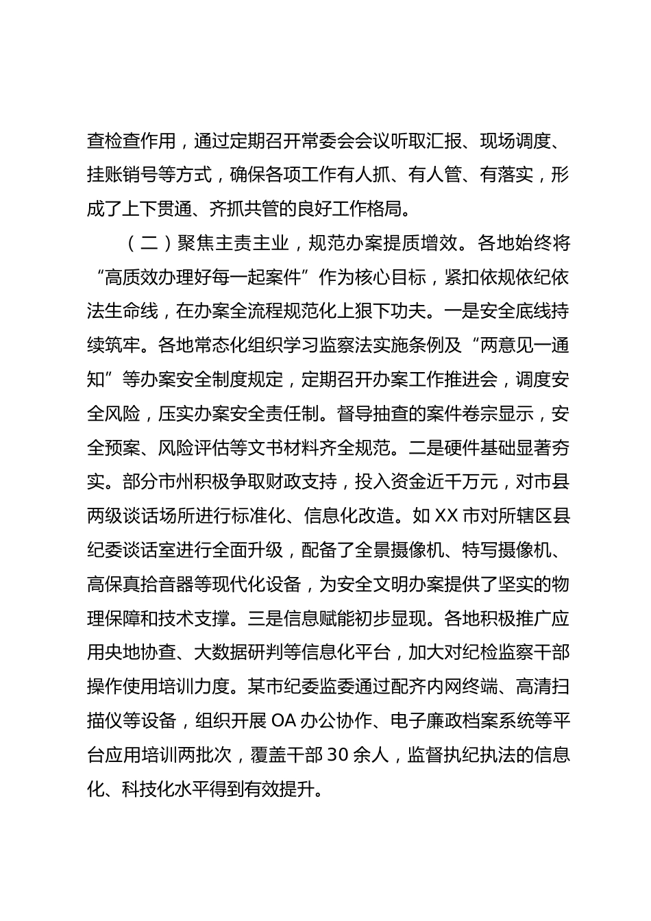 關(guān)于紀(jì)委監(jiān)委規(guī)范化法治化正規(guī)化建設(shè)情況的督導(dǎo)報告省委:根據(jù)省委統(tǒng)一部署,省委督導(dǎo)組于近期對全省部分市、州紀(jì)委監(jiān)委規(guī)范化、法治化、正規(guī)化建設(shè)工作開展了專項督導(dǎo)。督導(dǎo)組通過聽取匯報、查閱資料、實地走訪、個別談話等方式,深入了解了各地“三化”建設(shè)的進展與成效,梳理了存在的短板與不足?,F(xiàn)將有關(guān)情況報告如下。一、整體推進有力,“三化”建設(shè)取得階段性成效自全省“紀(jì)檢監(jiān)察工作規(guī)范化法治化正規(guī)化建設(shè)年”行動啟動以來,各市州紀(jì)委監(jiān)委高度重視,周密部署,緊緊圍繞提升紀(jì)檢監(jiān)察工作高質(zhì)量發(fā)展的內(nèi)在要求,以徹底的自我革命精神扎實推進各項任務(wù),取得了顯...