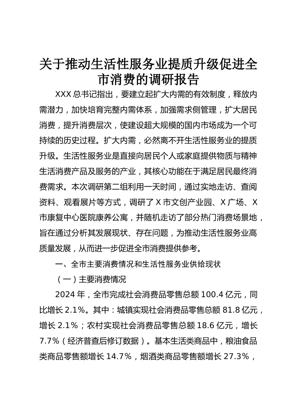 關(guān)于推動(dòng)生活性服務(wù)業(yè)提質(zhì)升級促進(jìn)全市消費(fèi)的調(diào)研報(bào)告