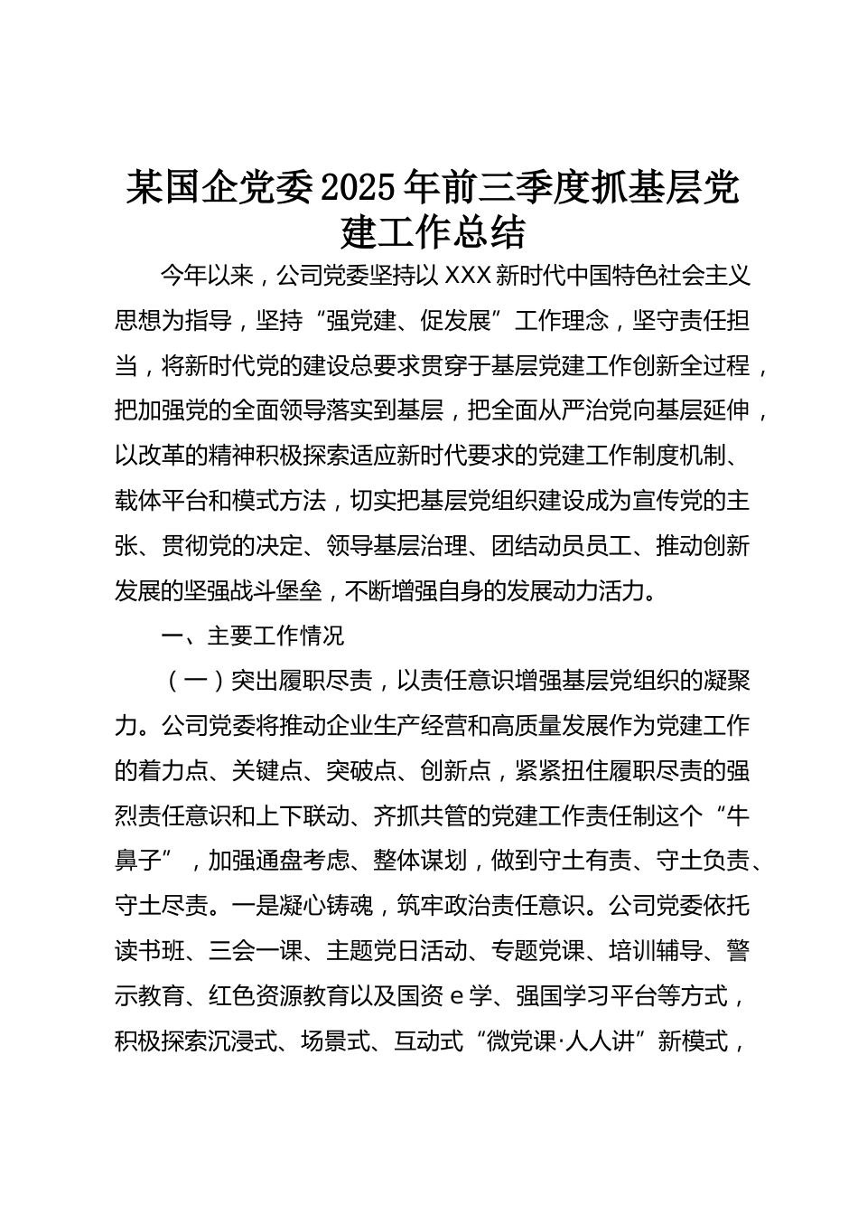 某國(guó)企黨委2025年前三季度抓基層黨建工作總結(jié)