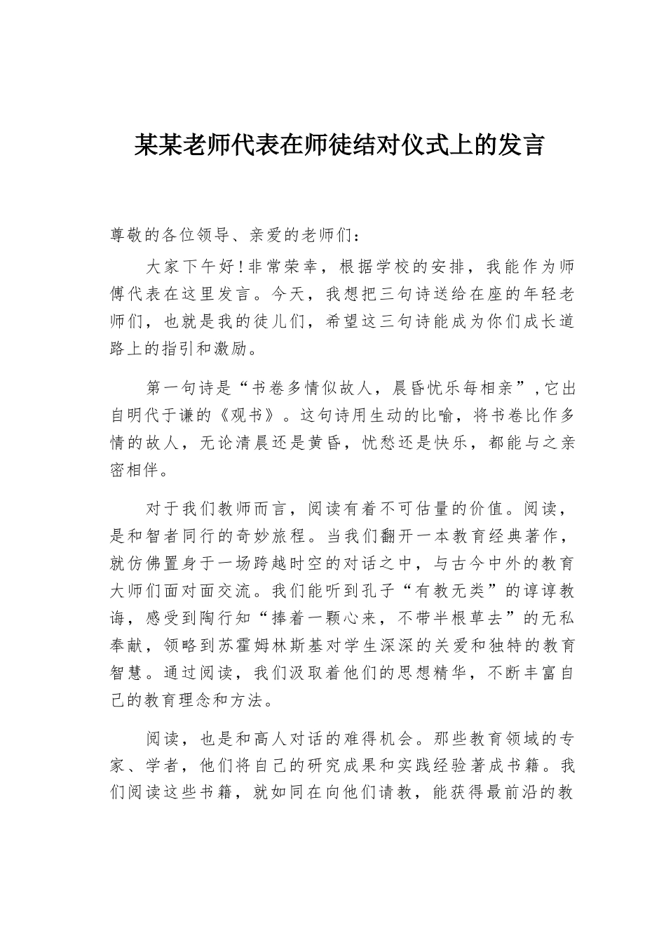 某某老師代表在師徒結(jié)對(duì)儀式上的發(fā)言