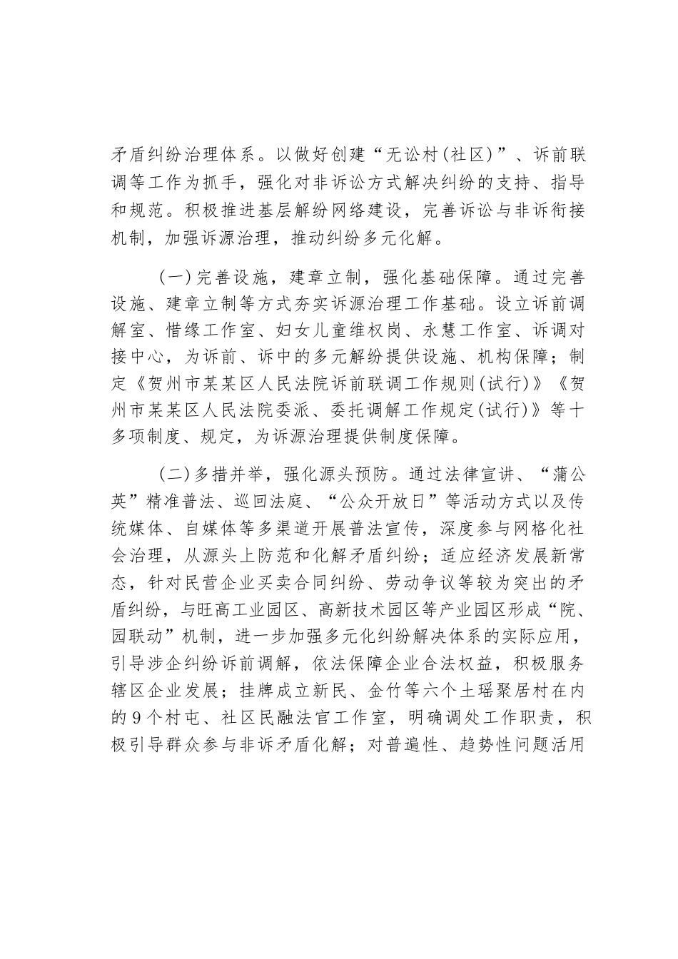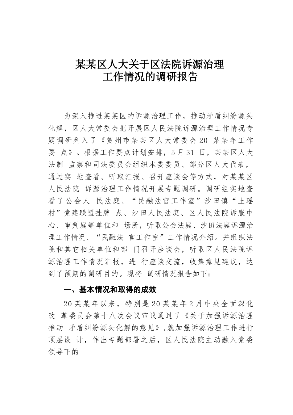 某某區(qū)人大關(guān)于區(qū)法院訴源治理工作情況的調(diào)研報告