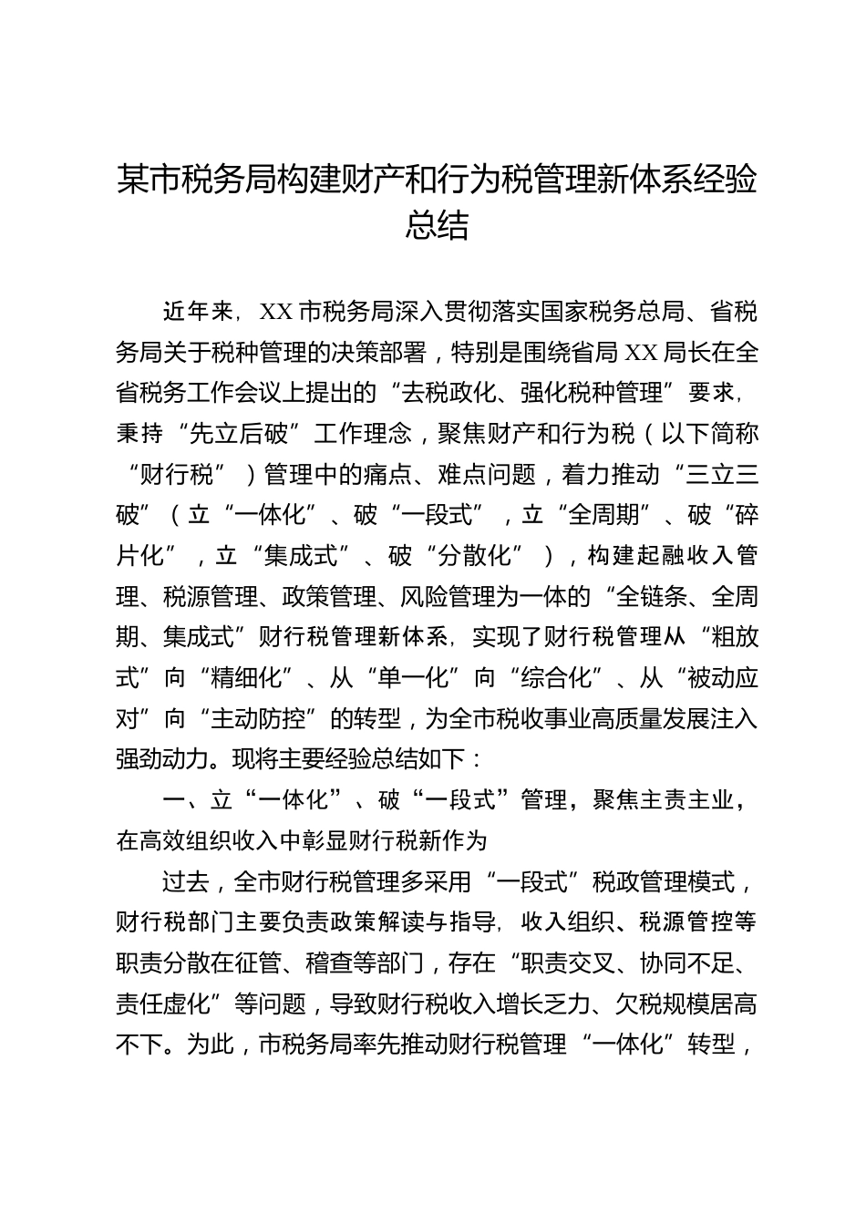某市稅務(wù)局構(gòu)建財(cái)產(chǎn)和行為稅管理新體系經(jīng)驗(yàn)總結(jié)