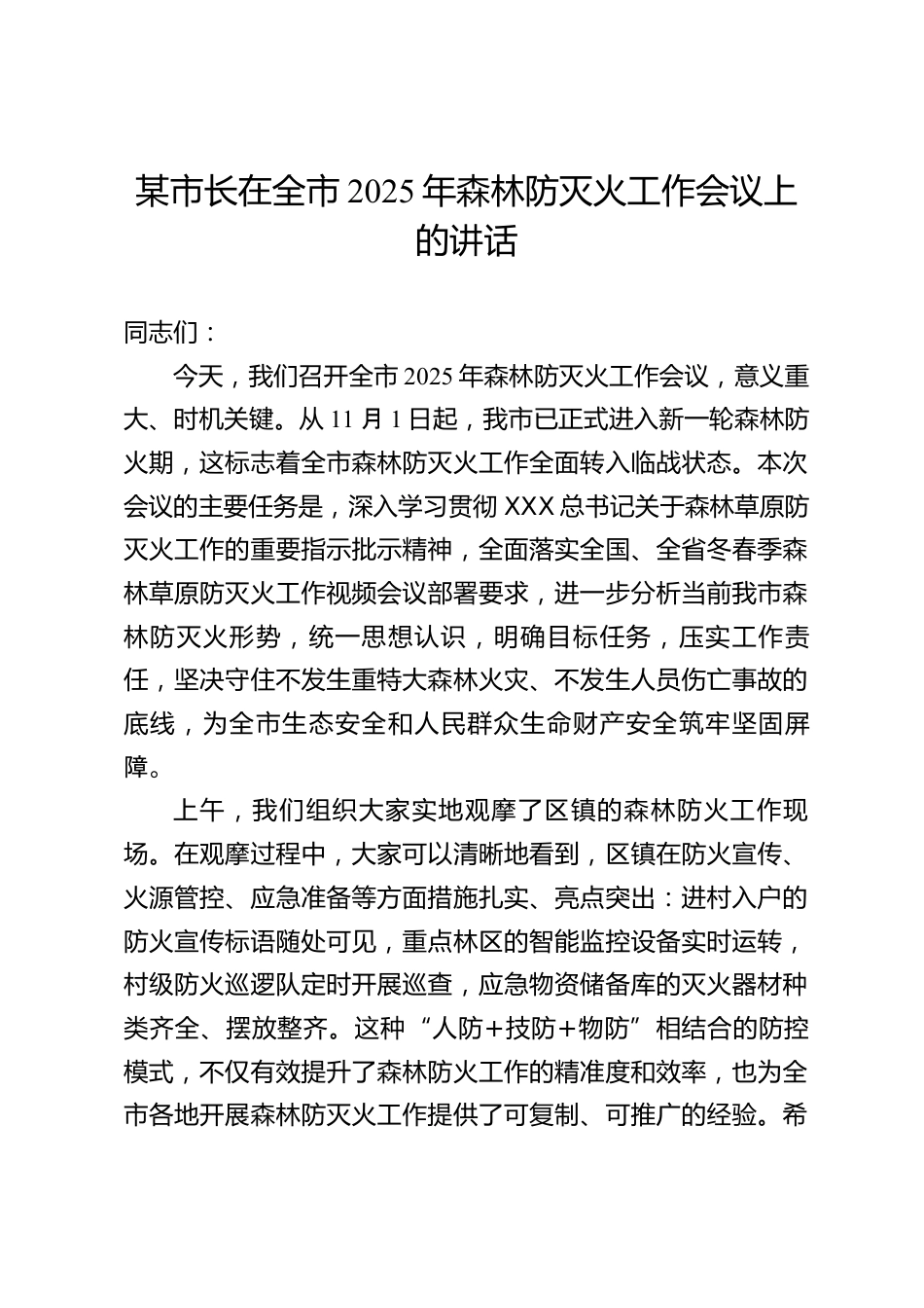 某市長在全市 2025 年森林防滅火工作會議上的講話
