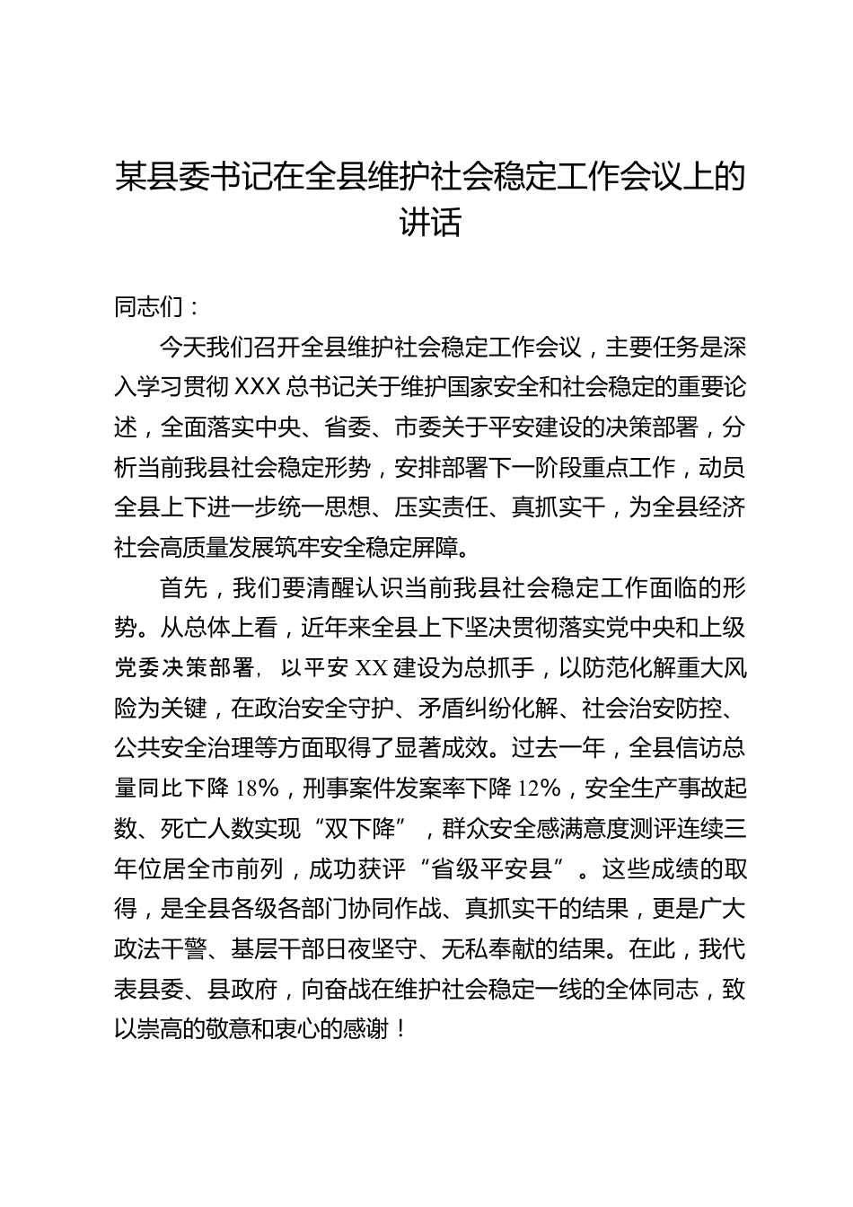某縣委書記在全縣維護社會穩(wěn)定工作會議上的講話3