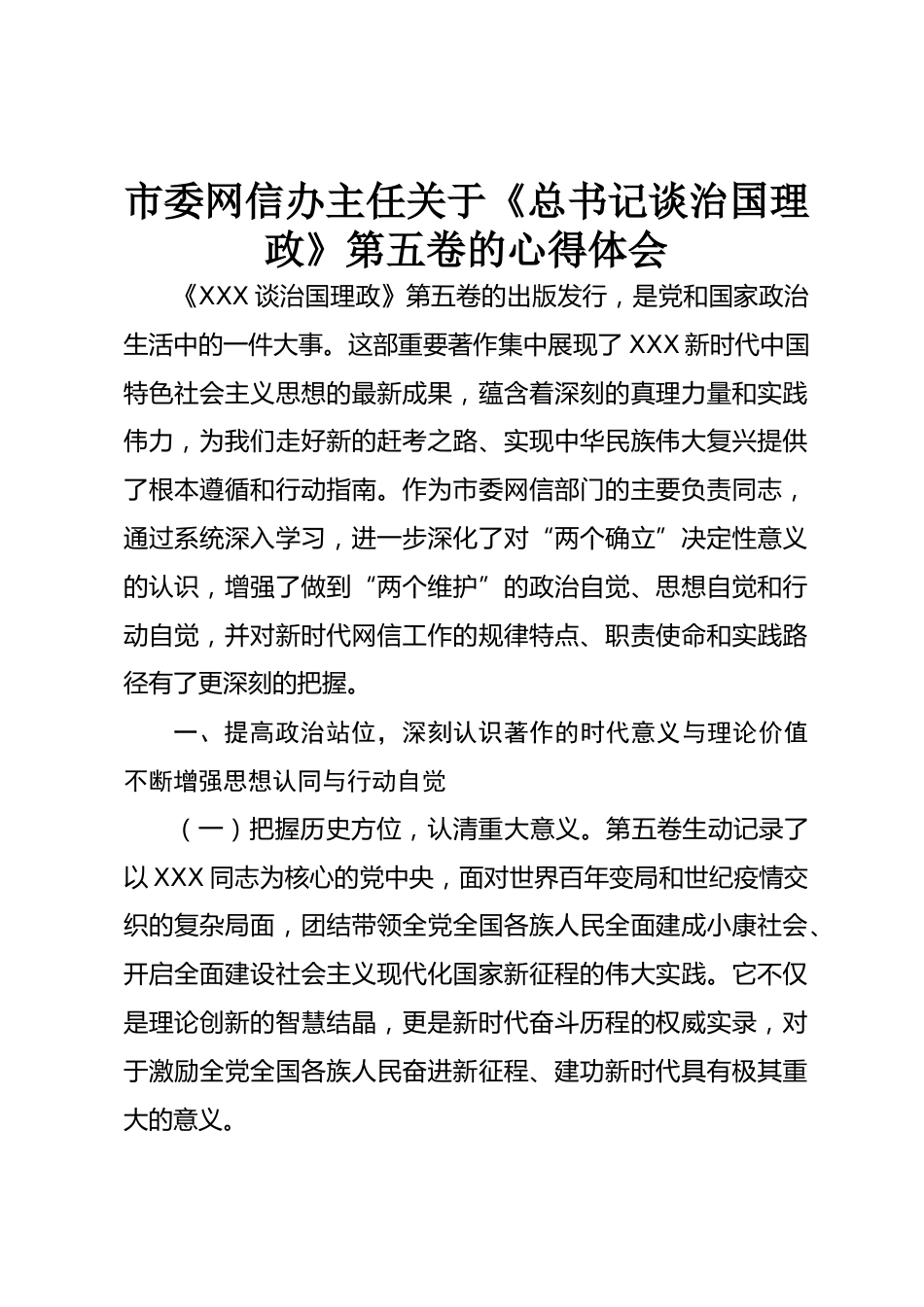 市委網(wǎng)信辦主任關(guān)于《總書記談治國理政》第五卷的心得體會
