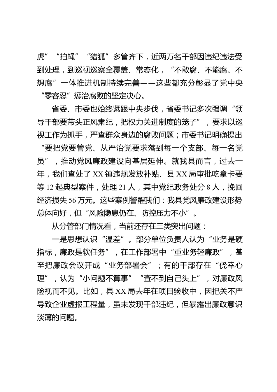 縣委常委、紀委書記在分管部門黨風廉政建設(shè)工作會議上的講話
