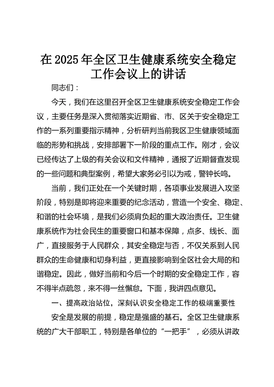 在2025年全區(qū)衛(wèi)生健康系統(tǒng)安全穩(wěn)定工作會(huì)議上的講話