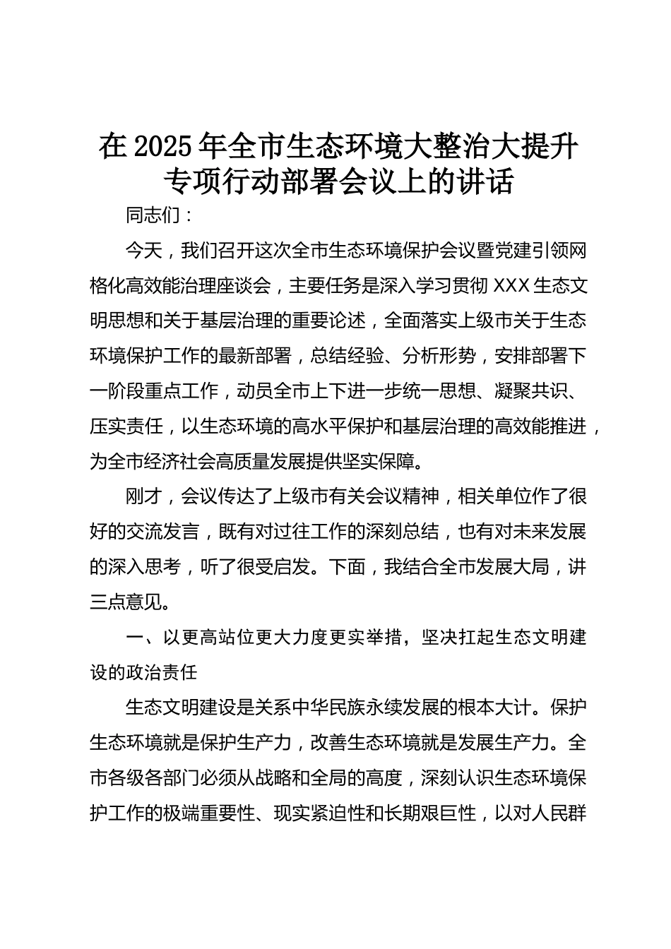 在2025年全市生態(tài)環(huán)境大整治大提升專項行動部署會議上的講話