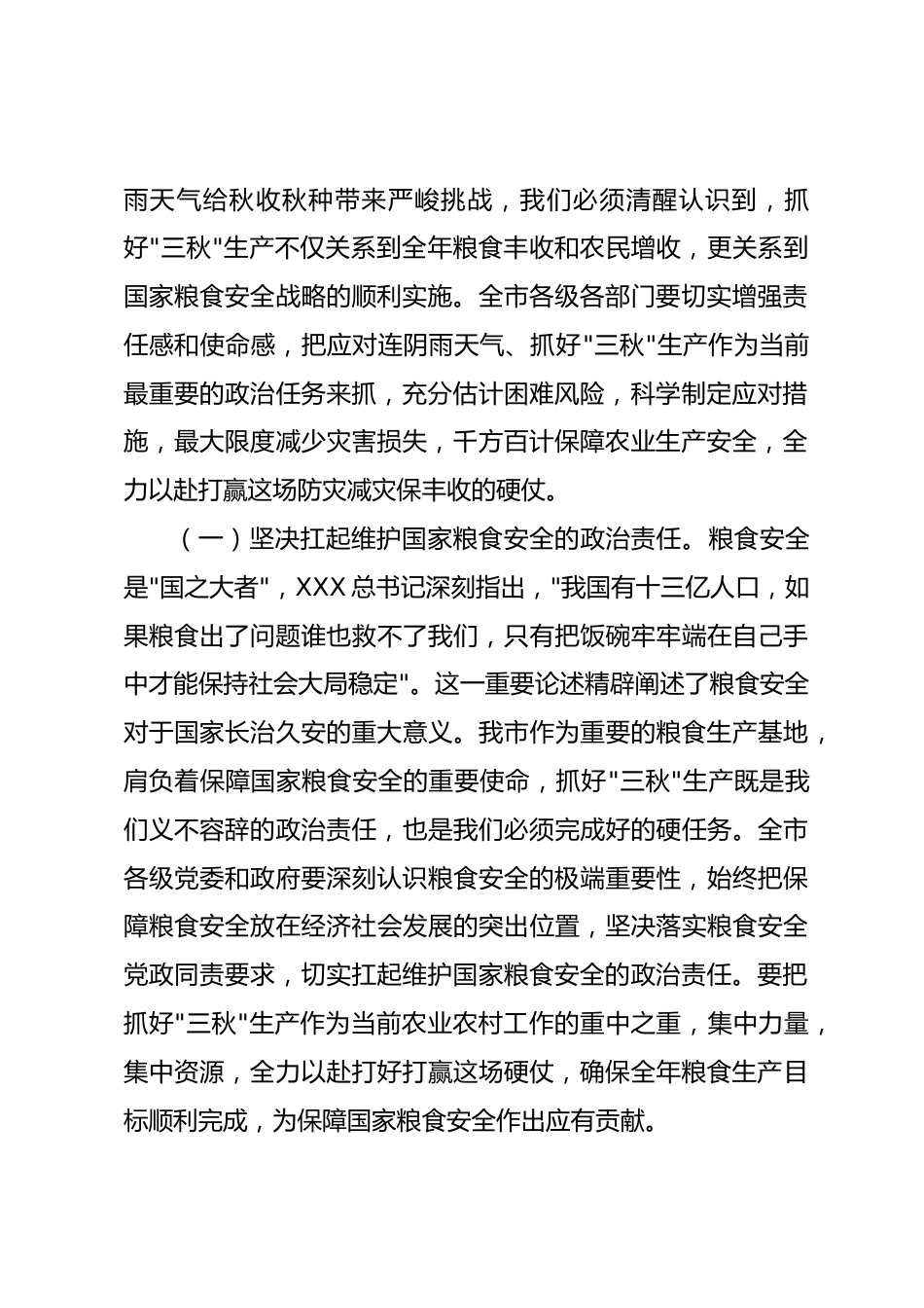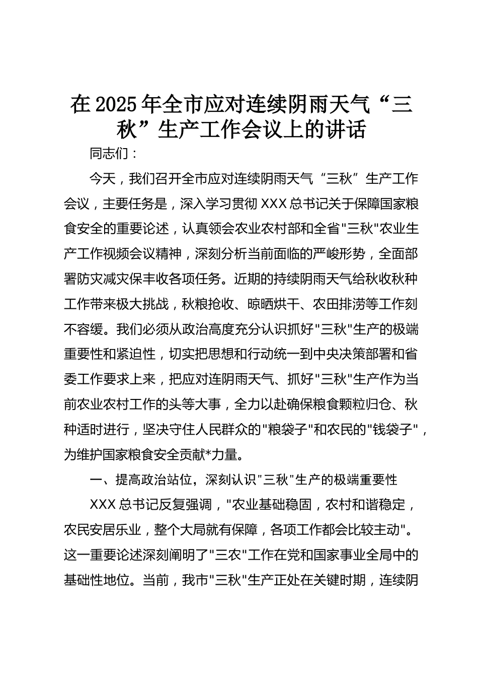 在2025年全市應對連續(xù)陰雨天氣“三秋”生產(chǎn)工作會議上的講話