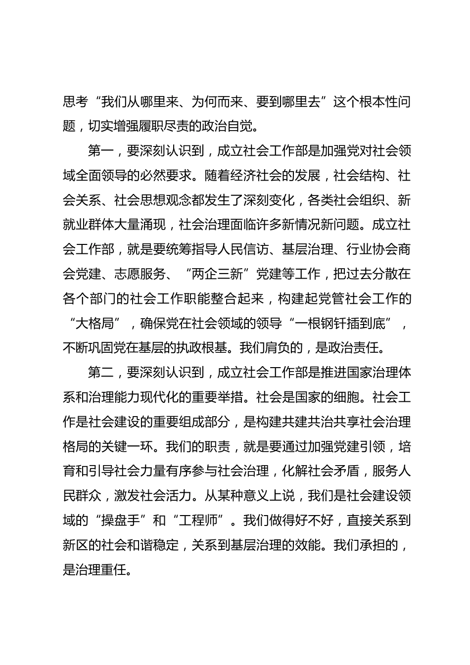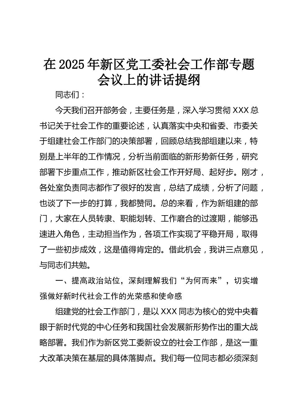 在2025年新區(qū)黨工委社會工作部專題會議上的講話提綱