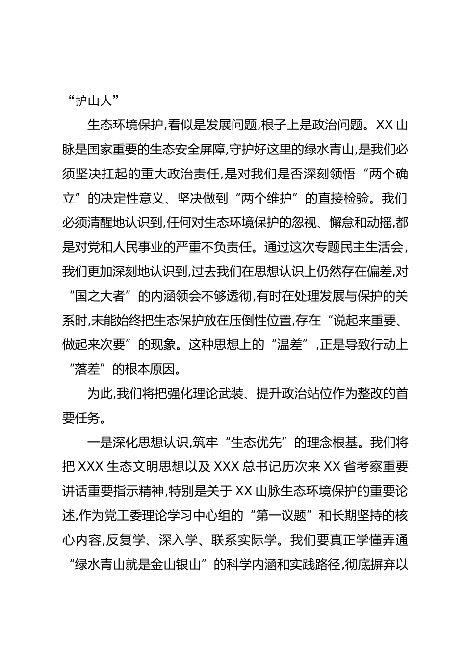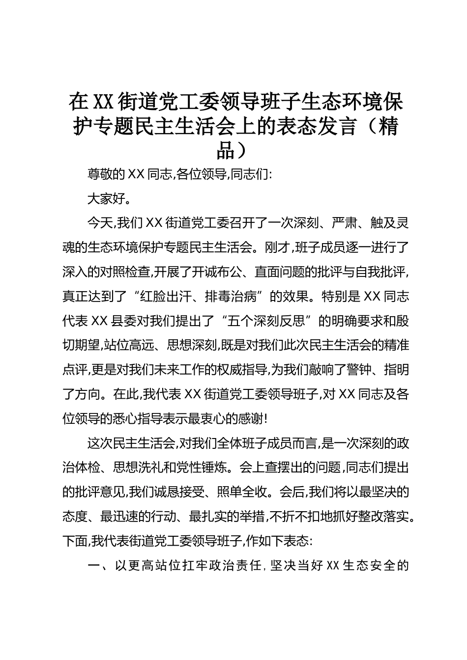 在XX街道黨工委領(lǐng)導(dǎo)班子生態(tài)環(huán)境保護(hù)專題民主生活會上的表態(tài)發(fā)言(精品)