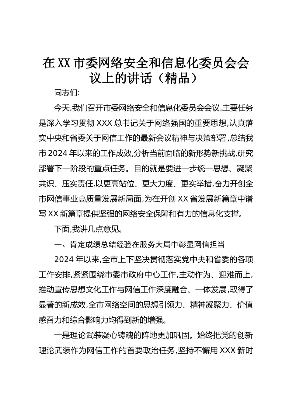 在XX市委網(wǎng)絡(luò)安全和信息化委員會會議上的講話(精品)