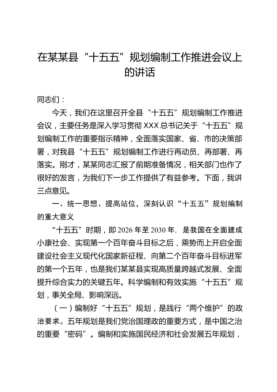 在某某縣“十五五”規(guī)劃編制工作推進(jìn)會議上的講話