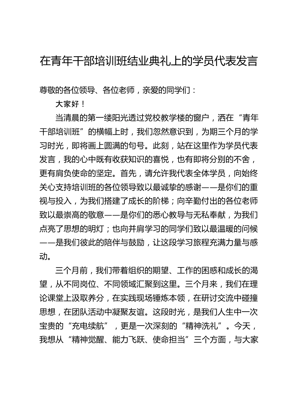 在青年干部培訓(xùn)班結(jié)業(yè)典禮上的學(xué)員代表發(fā)言