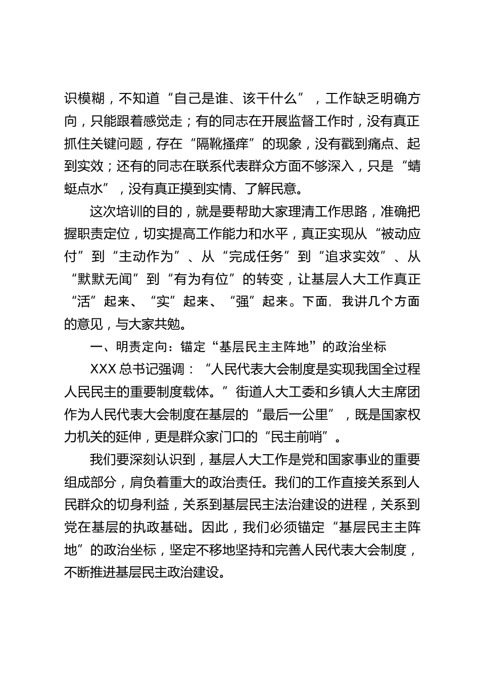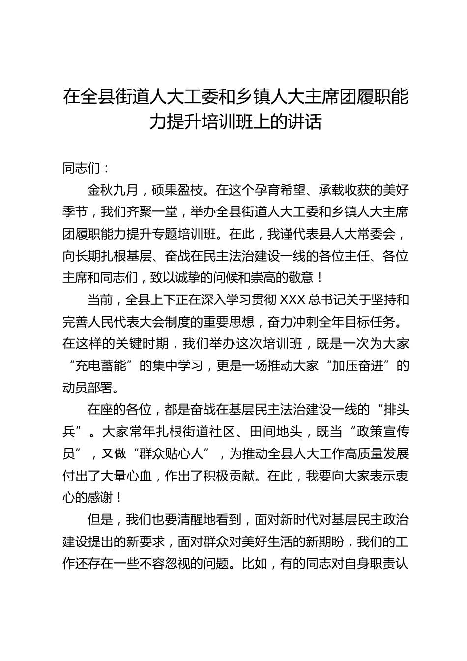 在全縣街道人大工委和鄉(xiāng)鎮(zhèn)人大主席團(tuán)履職能力提升培訓(xùn)班上的講話