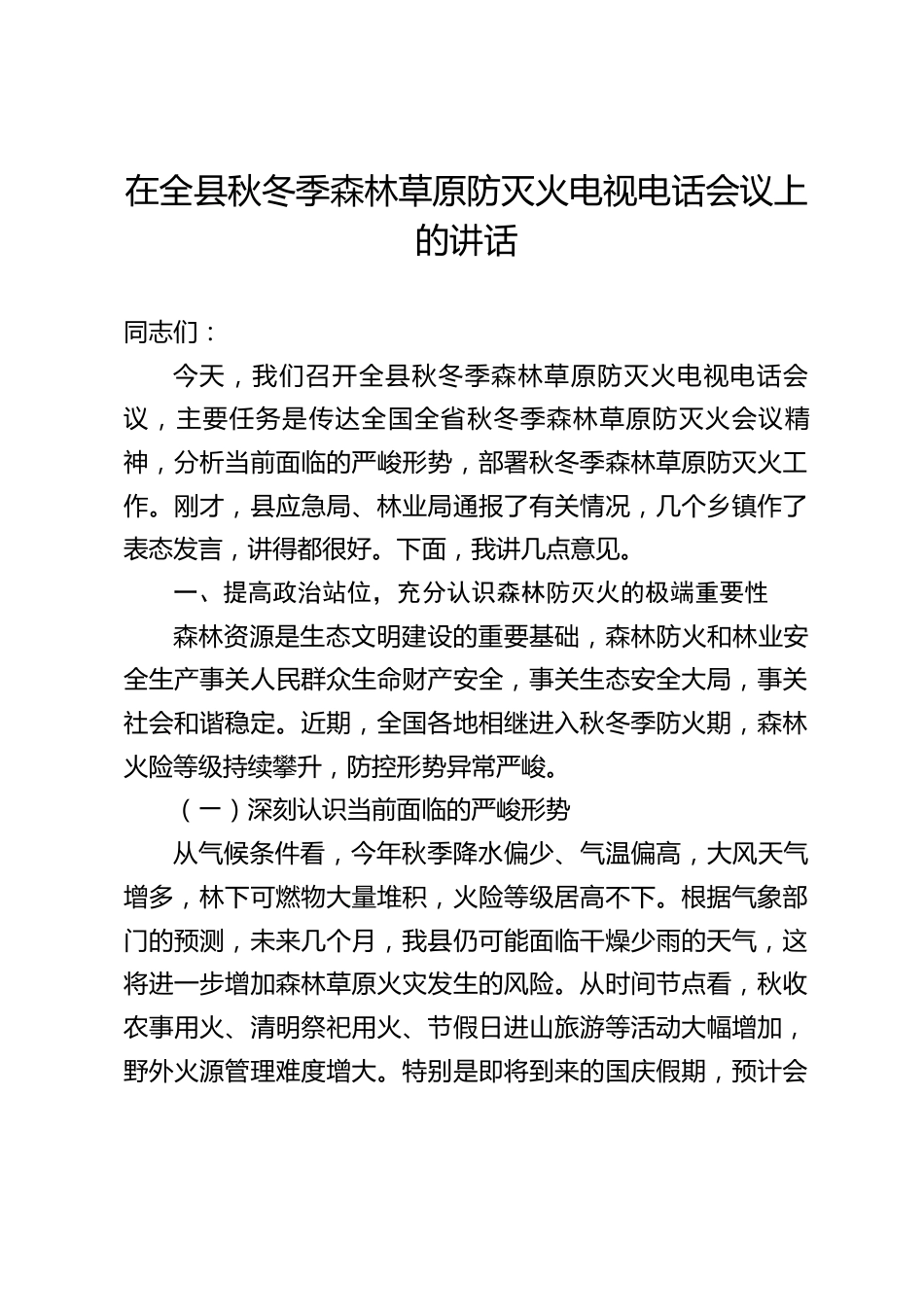 在全縣秋冬季森林草原防滅火電視電話會議上的講話