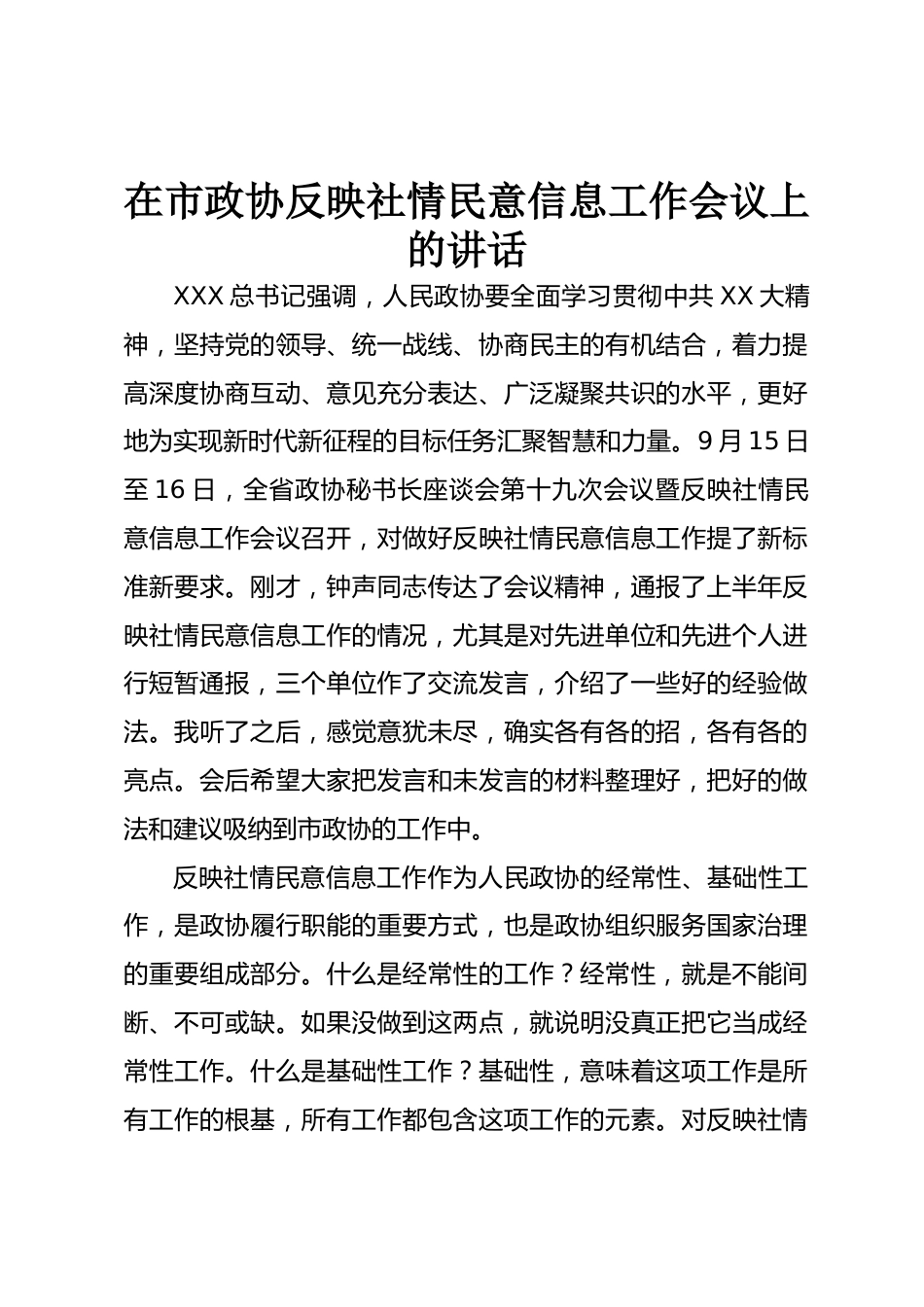 在市政協(xié)反映社情民意信息工作會(huì)議上的講話