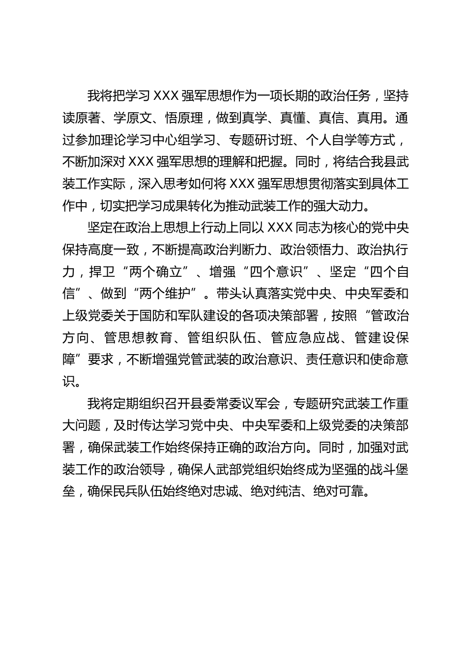 在縣人武部黨委第一書記任職宣布大會(huì)上的表態(tài)發(fā)言