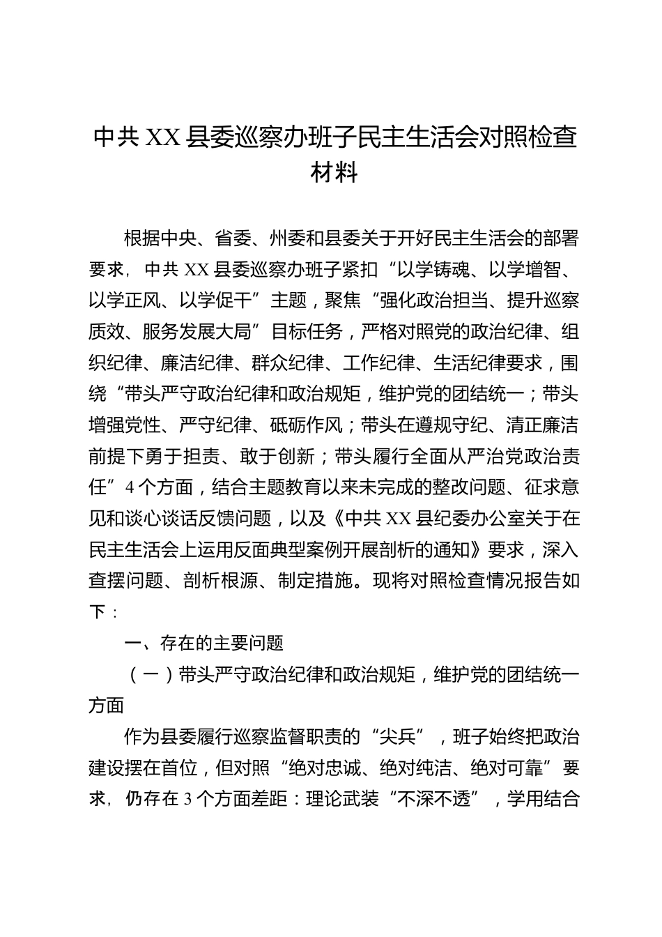 中共 XX 縣委巡察辦班子民主生活會對照檢查材料