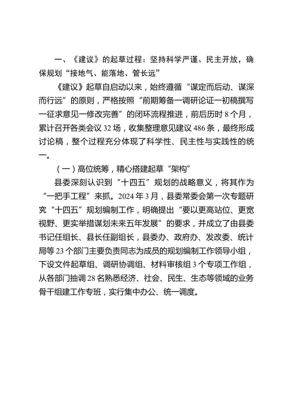 中共縣委關(guān)于制定縣國(guó)民經(jīng)濟(jì)和社會(huì)發(fā)展第十四個(gè)五年規(guī)劃和二〇三五年遠(yuǎn)景目標(biāo)的建議(討論稿)起草情況說明匯報(bào)