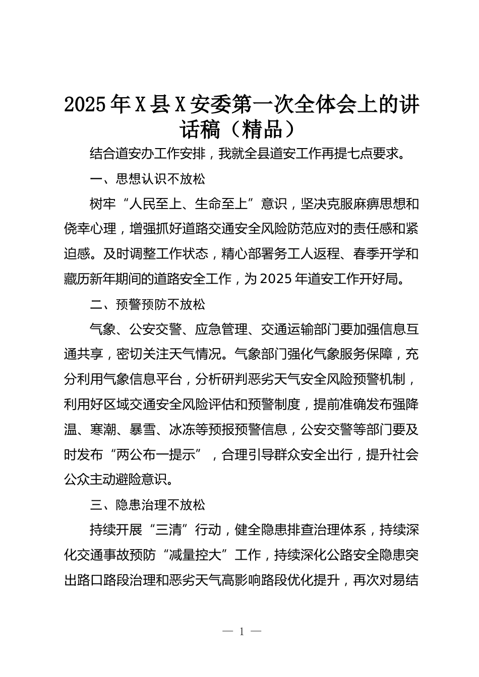 2025年X縣X安委第一次全體會(huì)上的講話稿(精品)