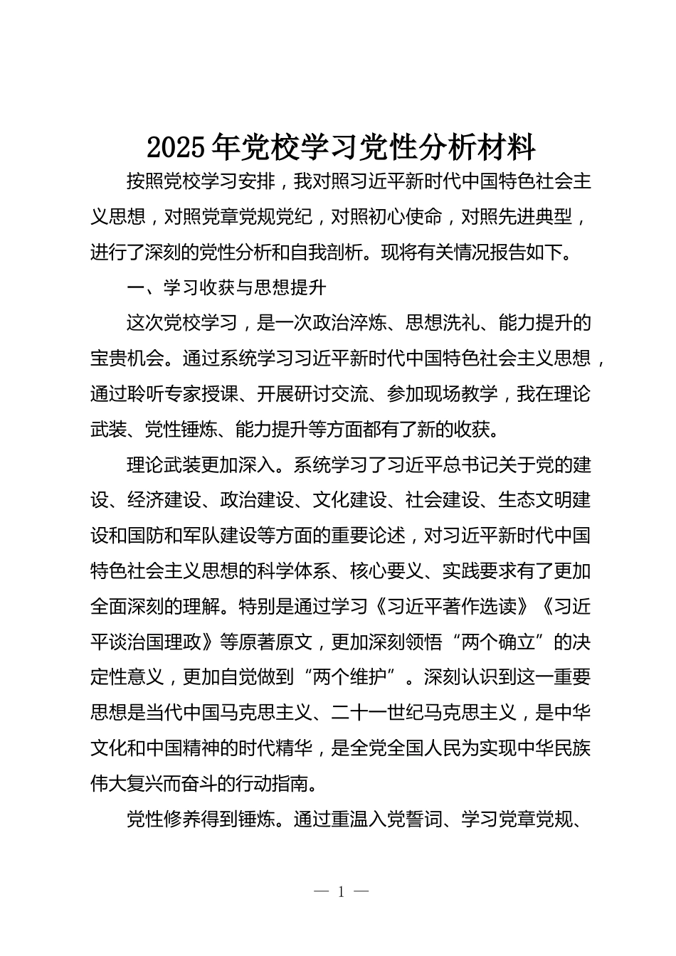 2025年黨校學(xué)習(xí)黨性分析材料按照黨校學(xué)習(xí)安排,我對照習(xí)近平新時代中國特色社會主義思想,對照黨章黨規(guī)黨紀(jì),對照初心使命,對照先進(jìn)典型,進(jìn)行了深刻的黨性分析和自我剖析?,F(xiàn)將有關(guān)情況報告如下。一、學(xué)習(xí)收獲與思想提升這次黨校學(xué)習(xí),是一次政治淬煉、思想洗禮、能力提升的寶貴機(jī)會。通過系統(tǒng)學(xué)習(xí)習(xí)近平新時代中國特色社會主義思想,通過聆聽專家授課、開展研討交流、參加現(xiàn)場教學(xué),我在理論武裝、黨性錘煉、能力提升等方面都有了新的收獲。理論武裝更加深入。系統(tǒng)學(xué)習(xí)了習(xí)近平總書記關(guān)于黨的建設(shè)、經(jīng)濟(jì)建設(shè)、政治建設(shè)、文化建設(shè)、社會建設(shè)、生態(tài)文明建設(shè)和國防和軍隊...