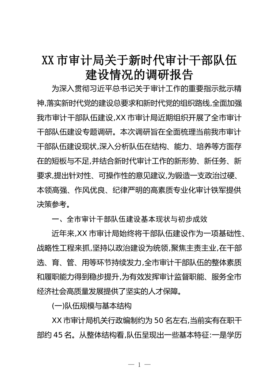 XX市審計局關(guān)于新時代審計干部隊伍建設(shè)情況的調(diào)研報告