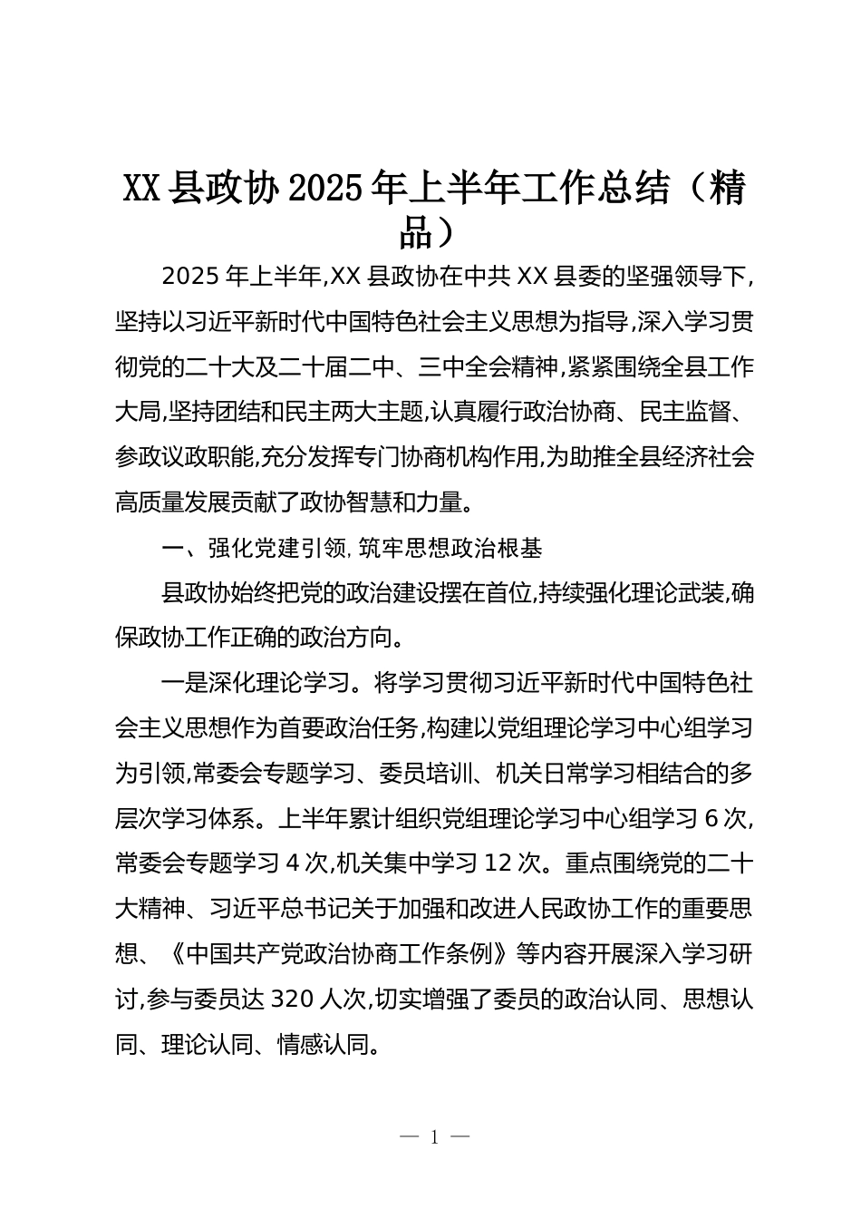 XX縣政協(xié)2025年上半年工作總結(jié)(精品)