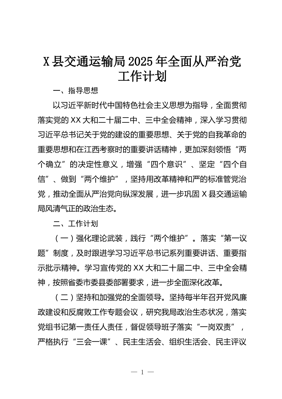 X縣交通運(yùn)輸局2025年全面從嚴(yán)治黨工作計劃