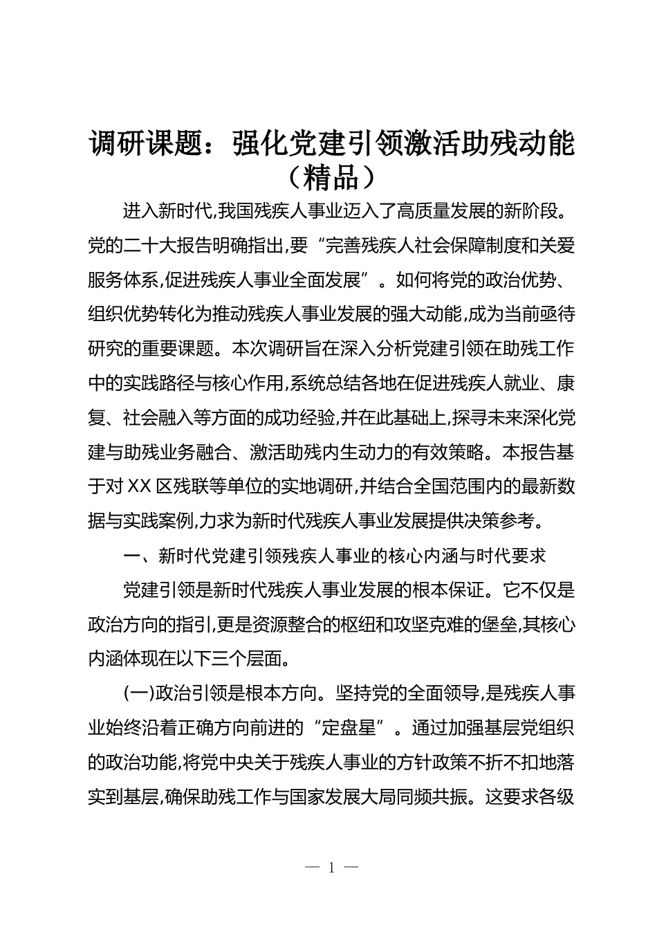 調(diào)研課題:強化黨建引領(lǐng)激活助殘動能(精品)VIP免費