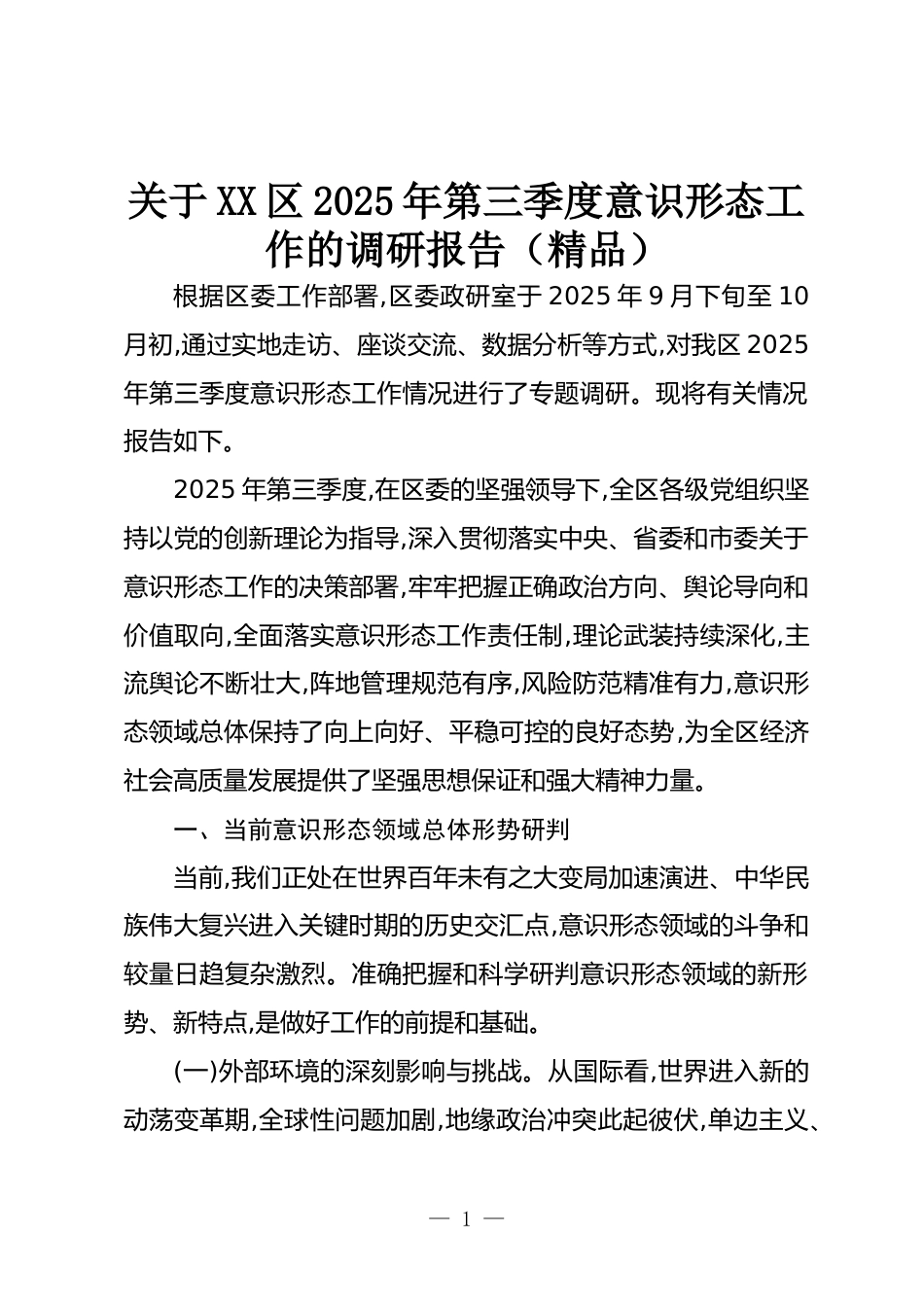 關(guān)于XX區(qū)2025年第三季度意識(shí)形態(tài)工作的調(diào)研報(bào)告(精品)VIP免費(fèi)