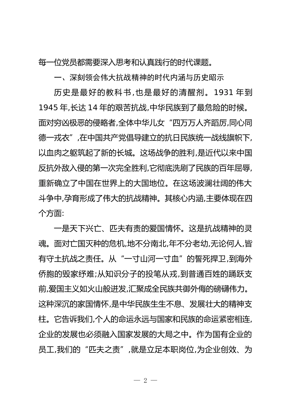 關(guān)于弘揚(yáng)偉大抗戰(zhàn)精神的專(zhuān)題黨課