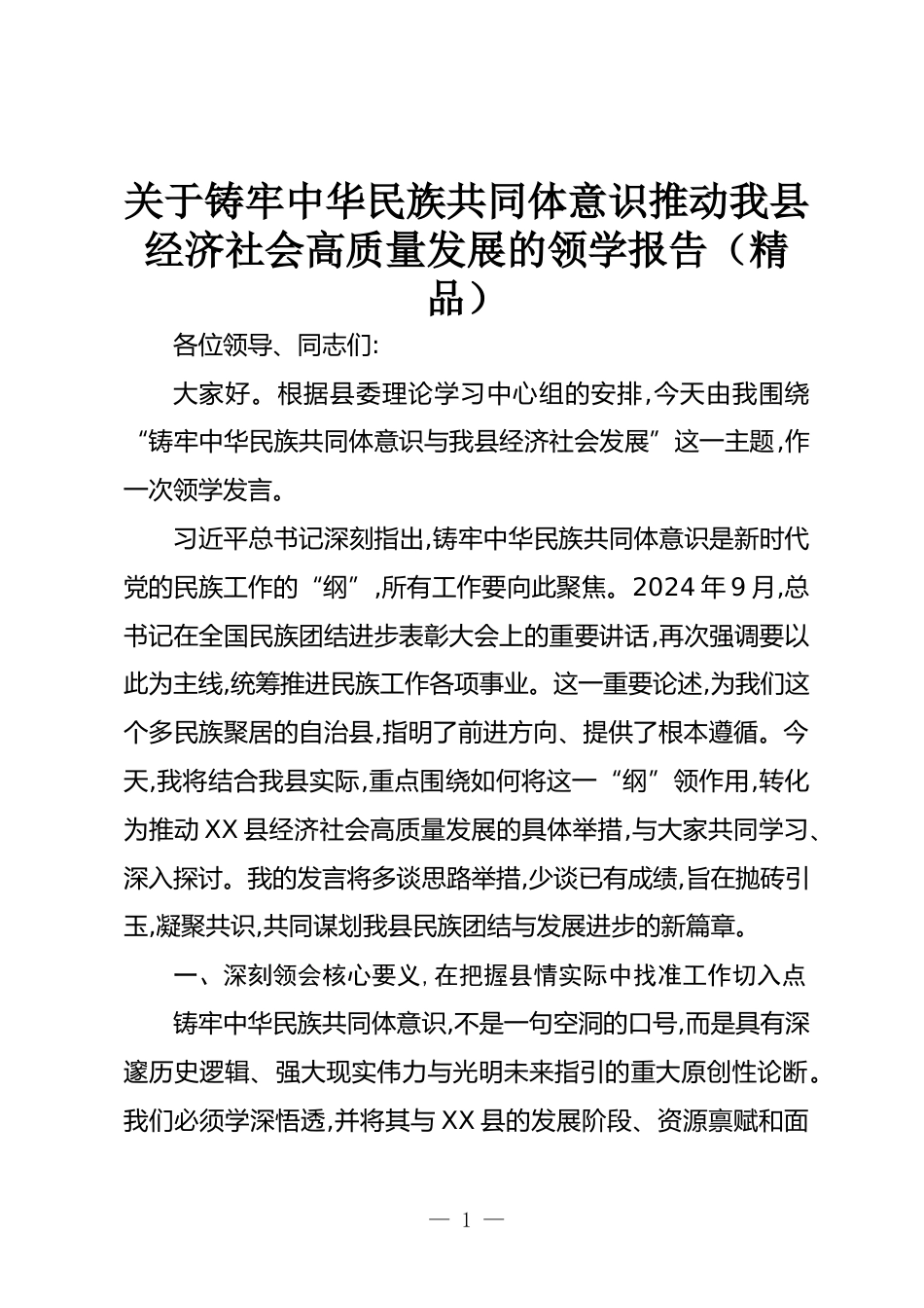 關(guān)于鑄牢中華民族共同體意識推動我縣經(jīng)濟(jì)社會高質(zhì)量發(fā)展的領(lǐng)學(xué)報告(精品)