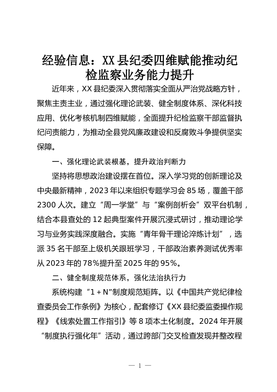 經(jīng)驗(yàn)信息:XX縣紀(jì)委四維賦能推動(dòng)紀(jì)檢監(jiān)察業(yè)務(wù)能力提升
