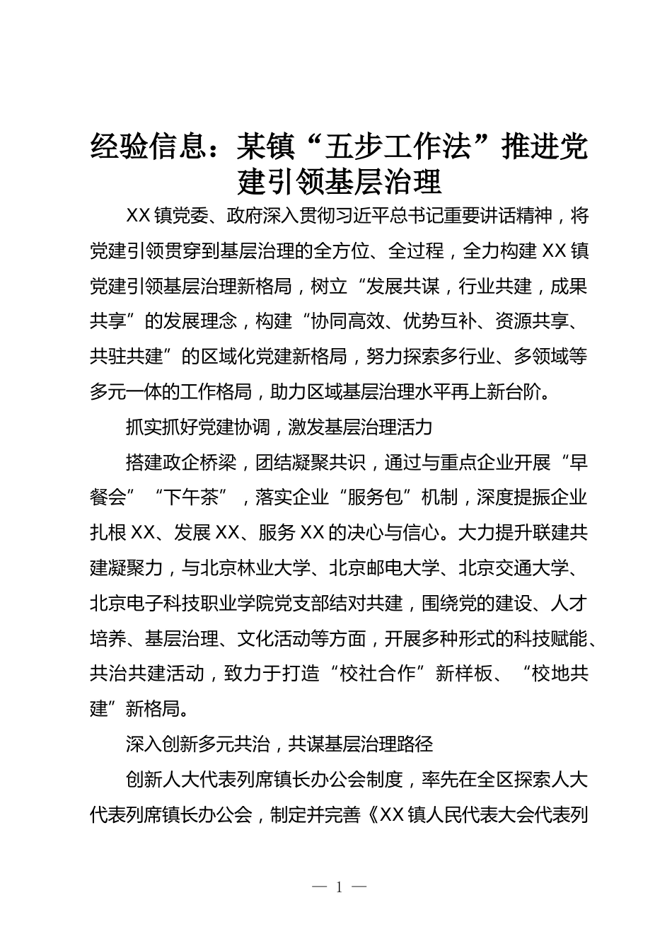經(jīng)驗(yàn)信息:某鎮(zhèn)“五步工作法”推進(jìn)黨建引領(lǐng)基層治理