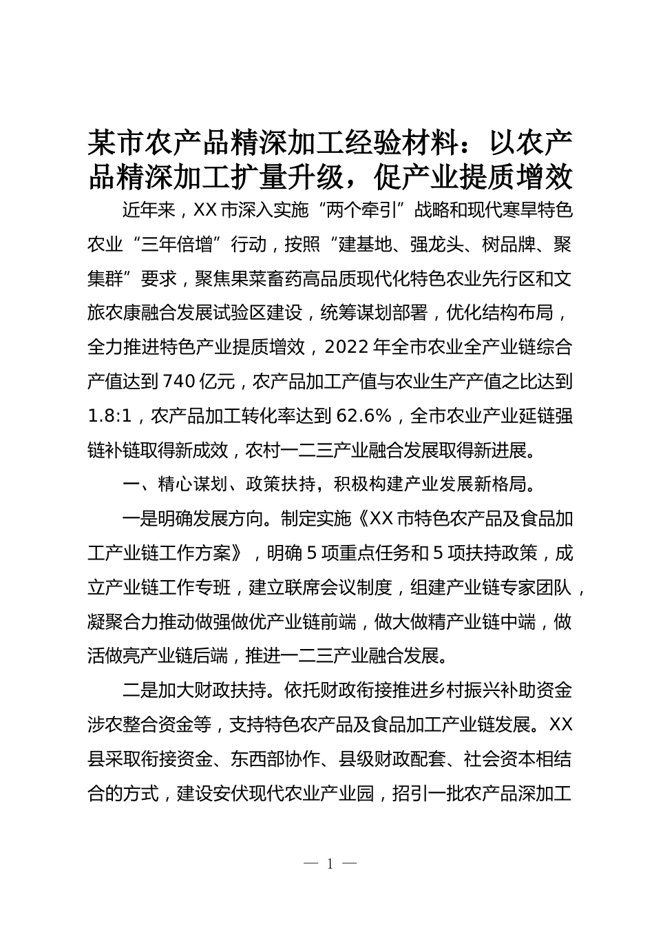 某市農(nóng)產(chǎn)品精深加工經(jīng)驗(yàn)材料:以農(nóng)產(chǎn)品精深加工擴(kuò)量升級(jí),促產(chǎn)業(yè)提質(zhì)增效