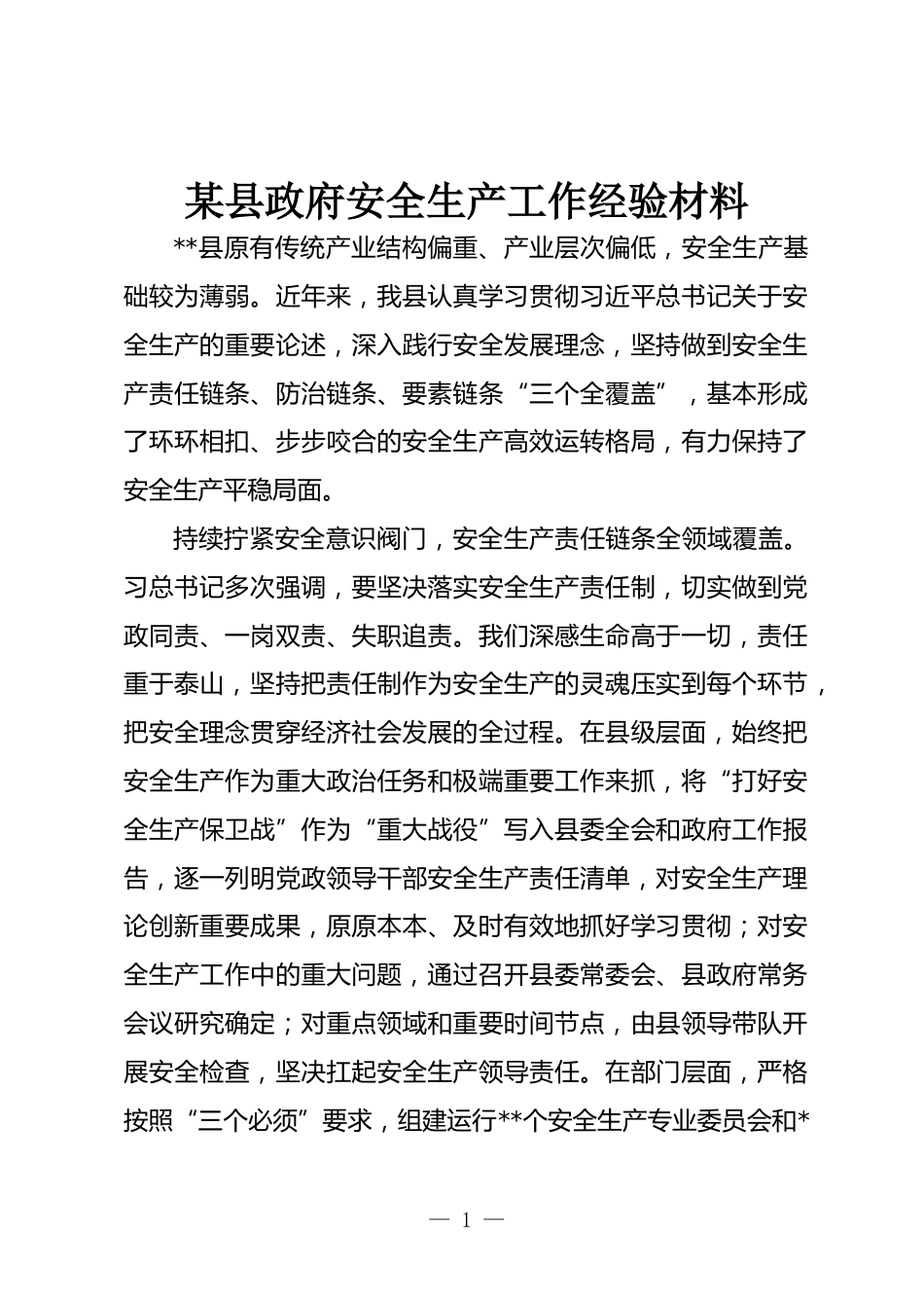 某縣政府安全生產(chǎn)工作經(jīng)驗材料