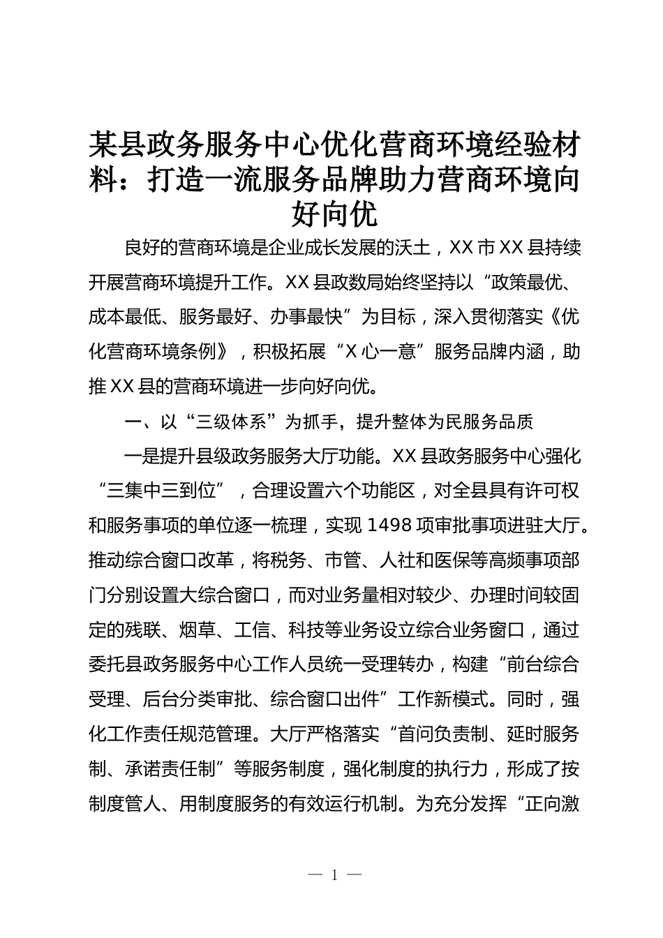 某縣政務(wù)服務(wù)中心優(yōu)化營商環(huán)境經(jīng)驗材料:打造一流服務(wù)品牌助力營商環(huán)境向好向優(yōu)