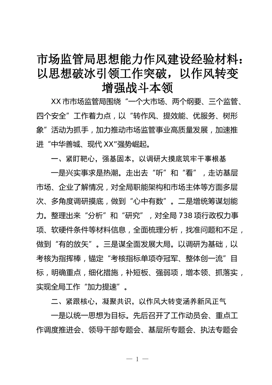 市場監(jiān)管局思想能力作風建設經驗材料:以思想破冰引領工作突破,以作風轉變增強戰(zhàn)斗本領